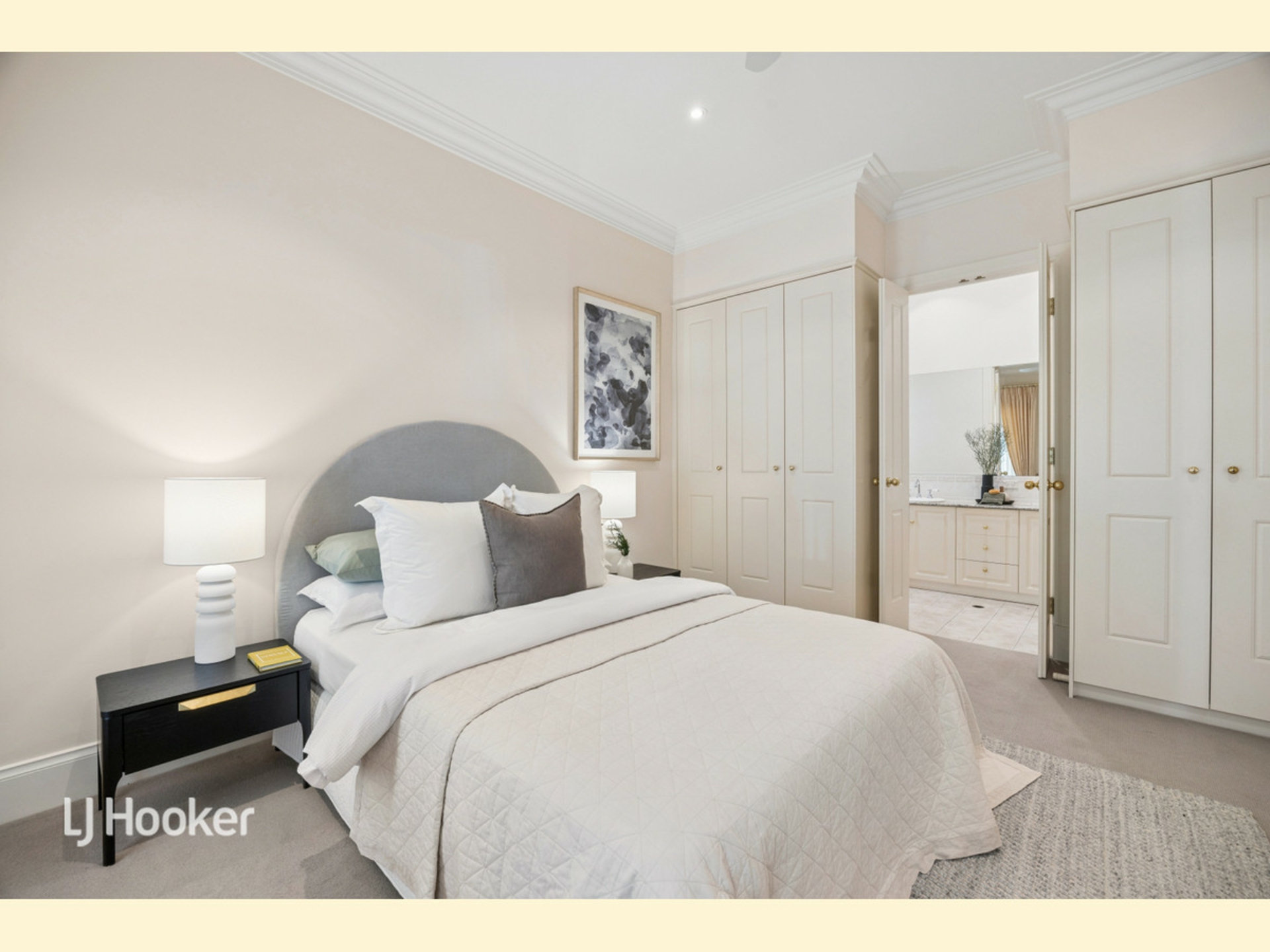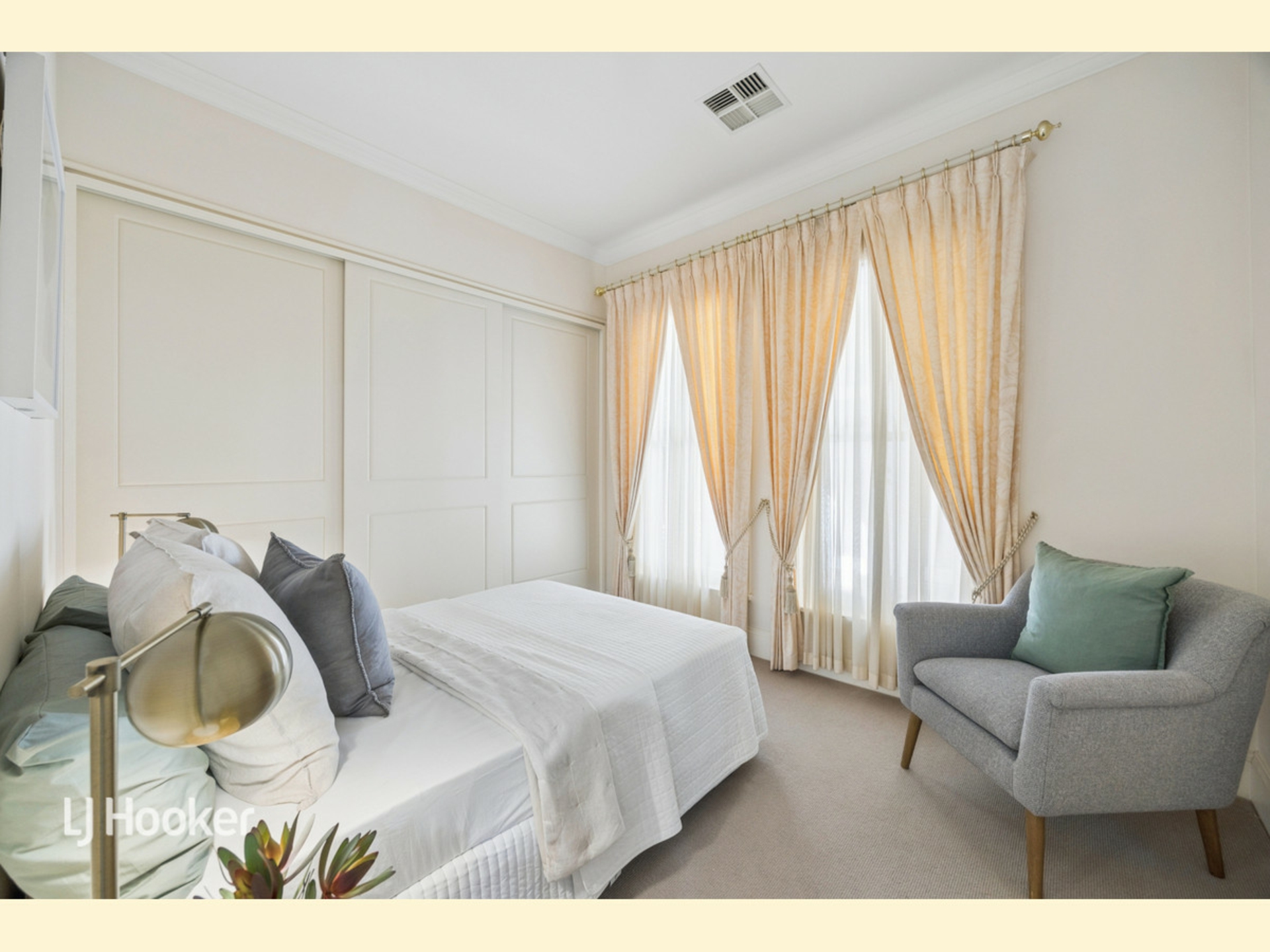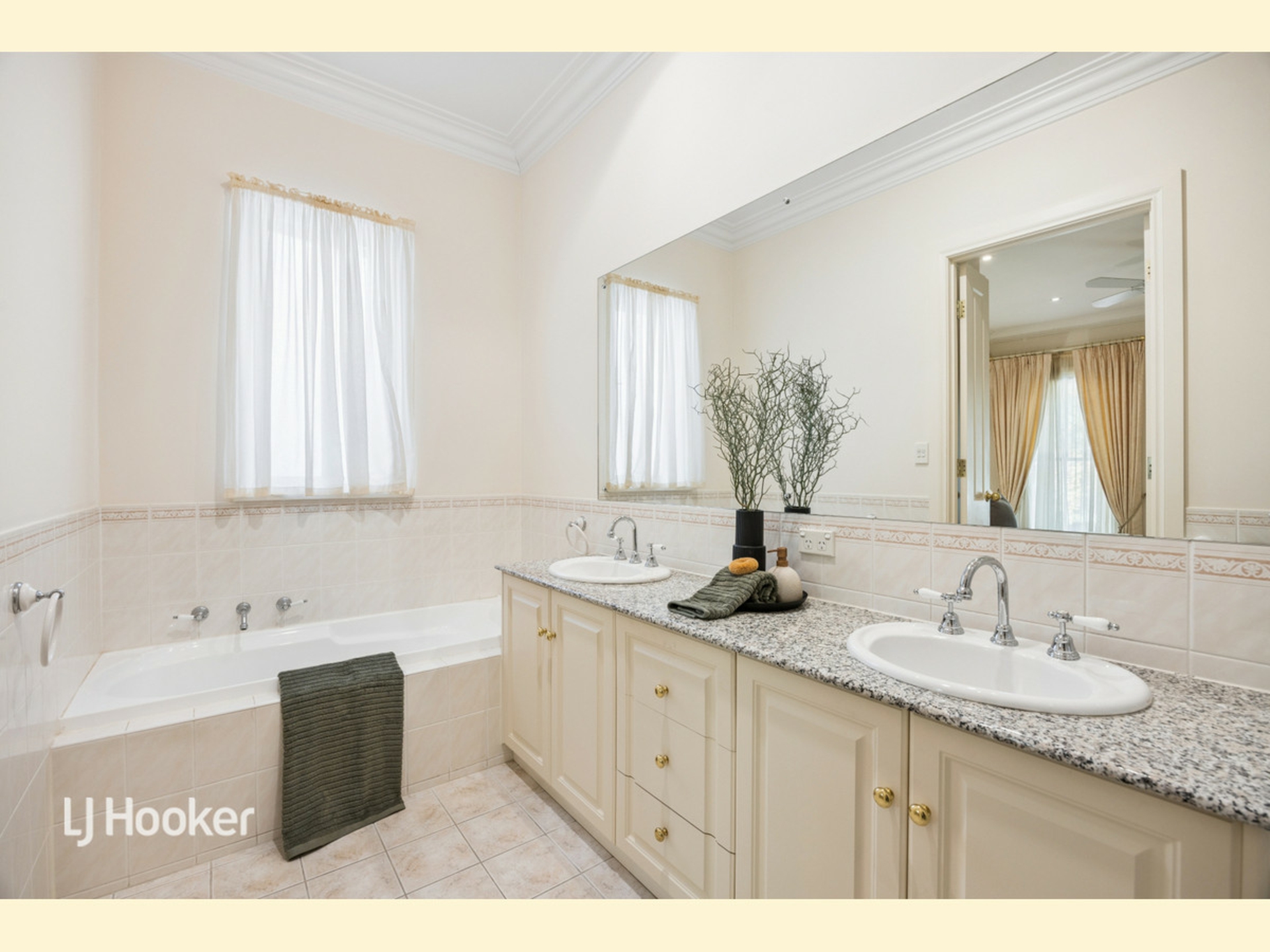 The sleeping accommodation has been well thought through. The spacious master at the front of the home provides views over the front courtyard and greenery. The ensuite features dual vanity and stone benchtops. Beds two and three are separated in their own section of the house and are serviced by an adjacent main bathroom.