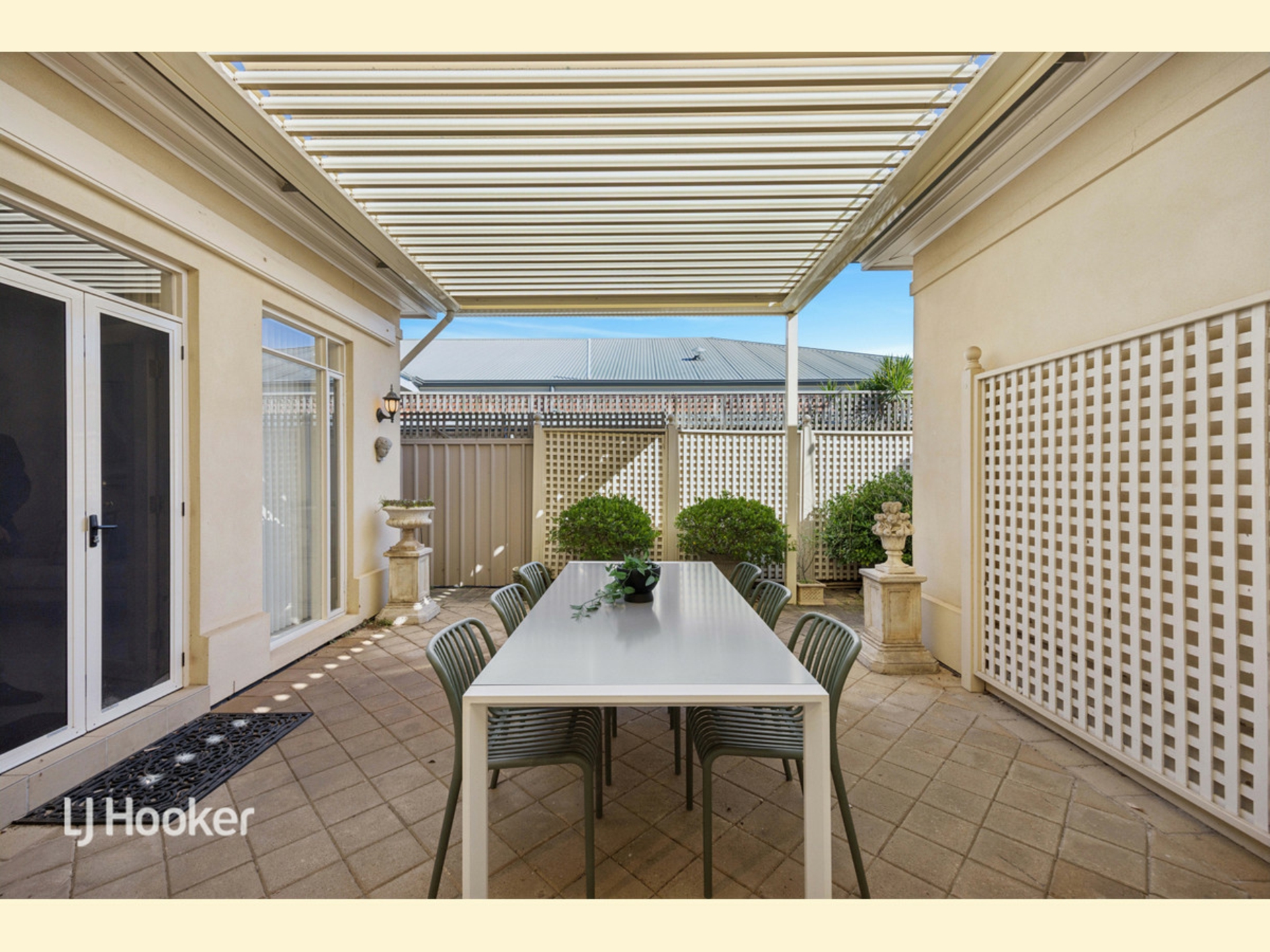 Outdoors, low-maintenance courtyards deliver the ideal balance of space and simplicity. Paved front and rear courtyards and the Vergola to the rear creates a private setting for year-round enjoyment without the upkeep typically associated with larger homes.