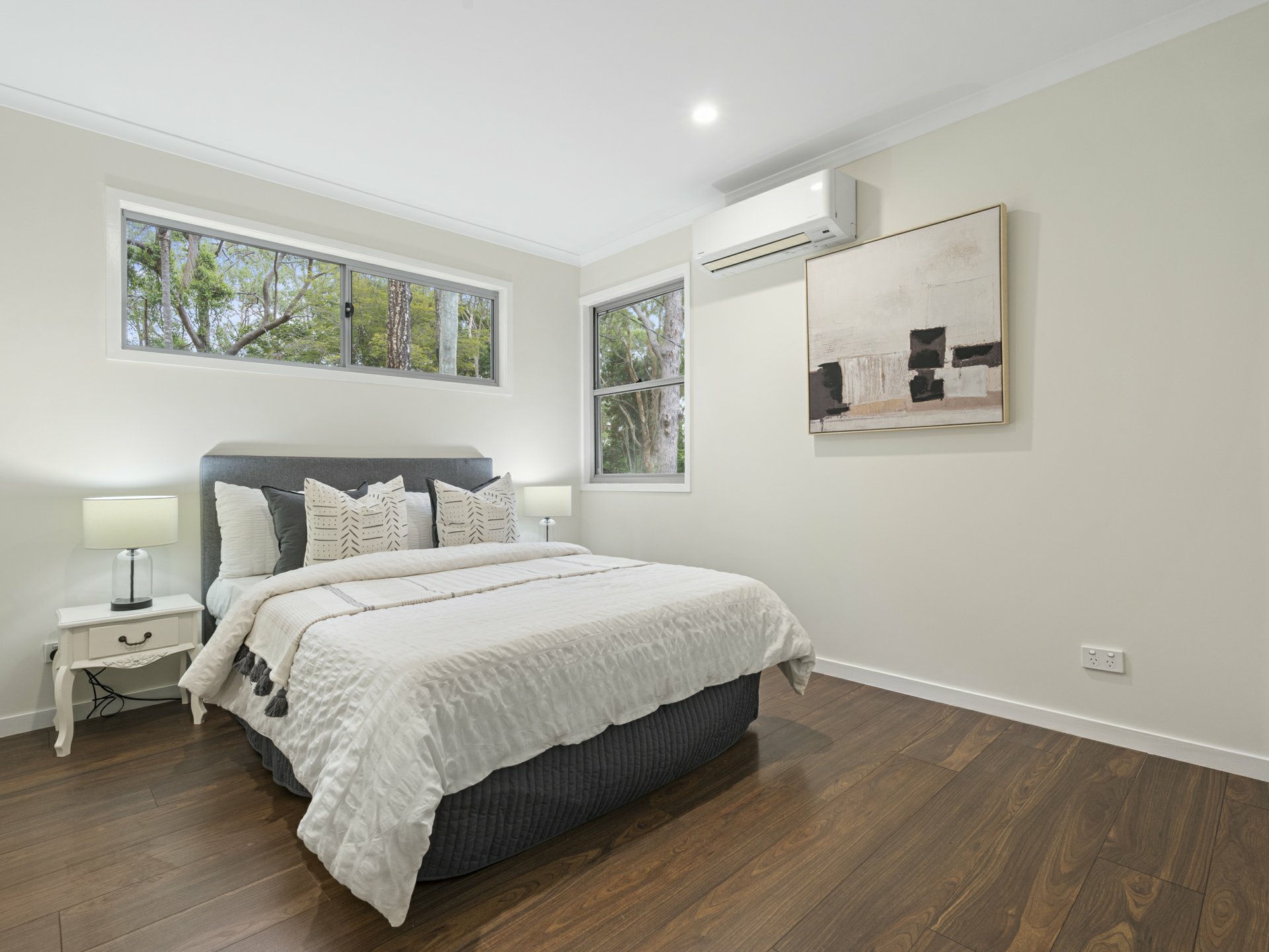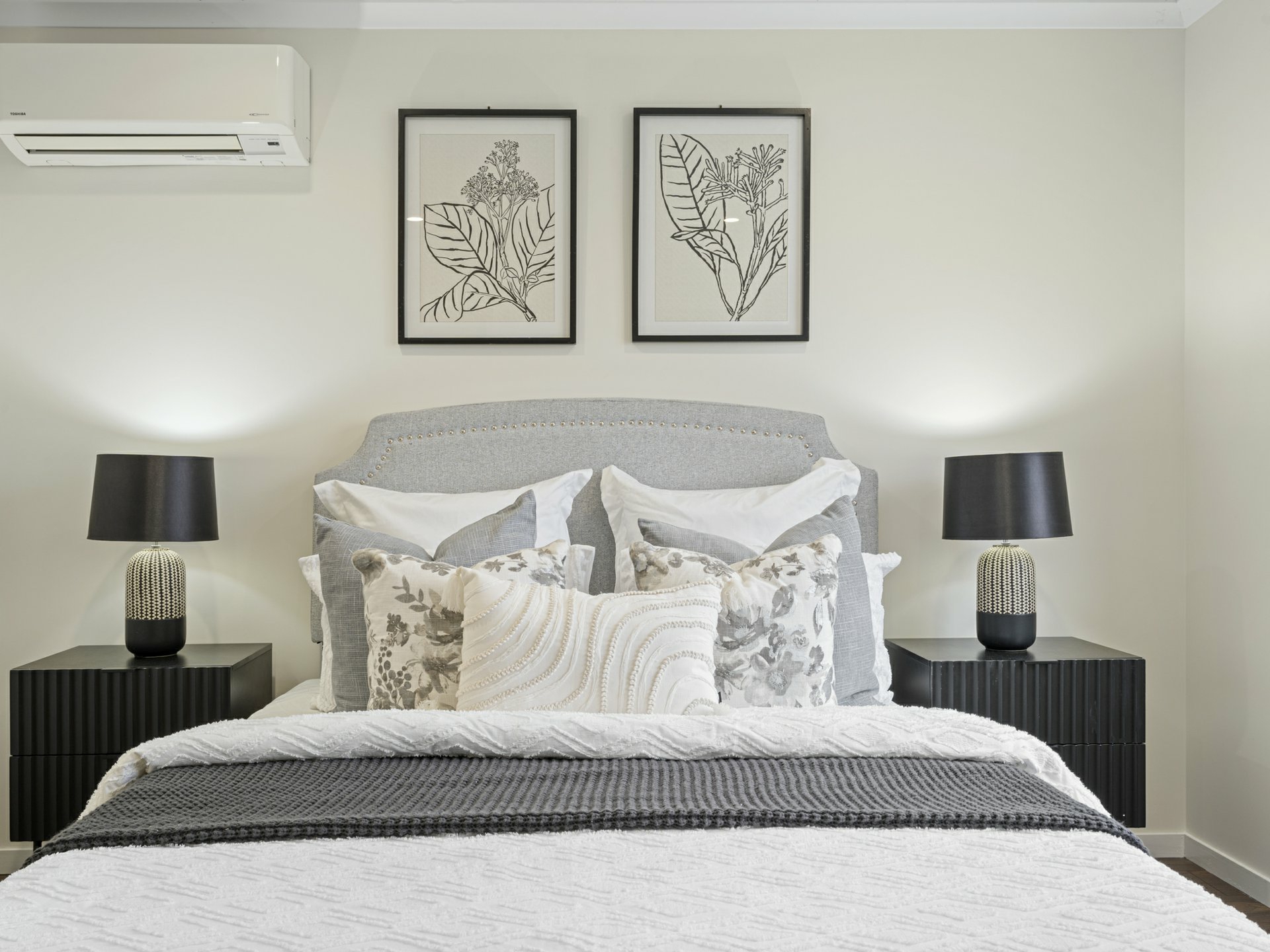 Upstairs, the home transitions to durable and stylish laminated timber flooring, ideal for durability and low upkeep. Four well-proportioned bedrooms offer flexibility for families, guests, or a dedicated home office, all complete with their own air conditioning for year-round comfort. The master suite is thoughtfully positioned and includes a walk-in robe and ensuite. The remaining bedrooms are serviced by a central bathroom, ideal for growing households.