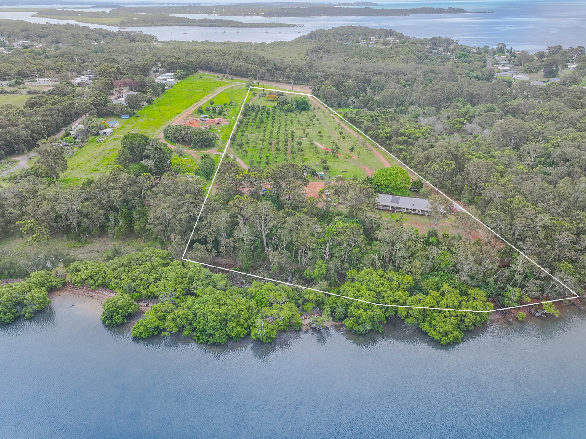 Discover the rich history and future possibilities of this remarkable waterfront property on Russell Island. Spanning an expansive 40,000m², this macadamia nut farm offers breathtaking views over North Stradbroke Island and is situated on the highly sought-after eastern side of the island.