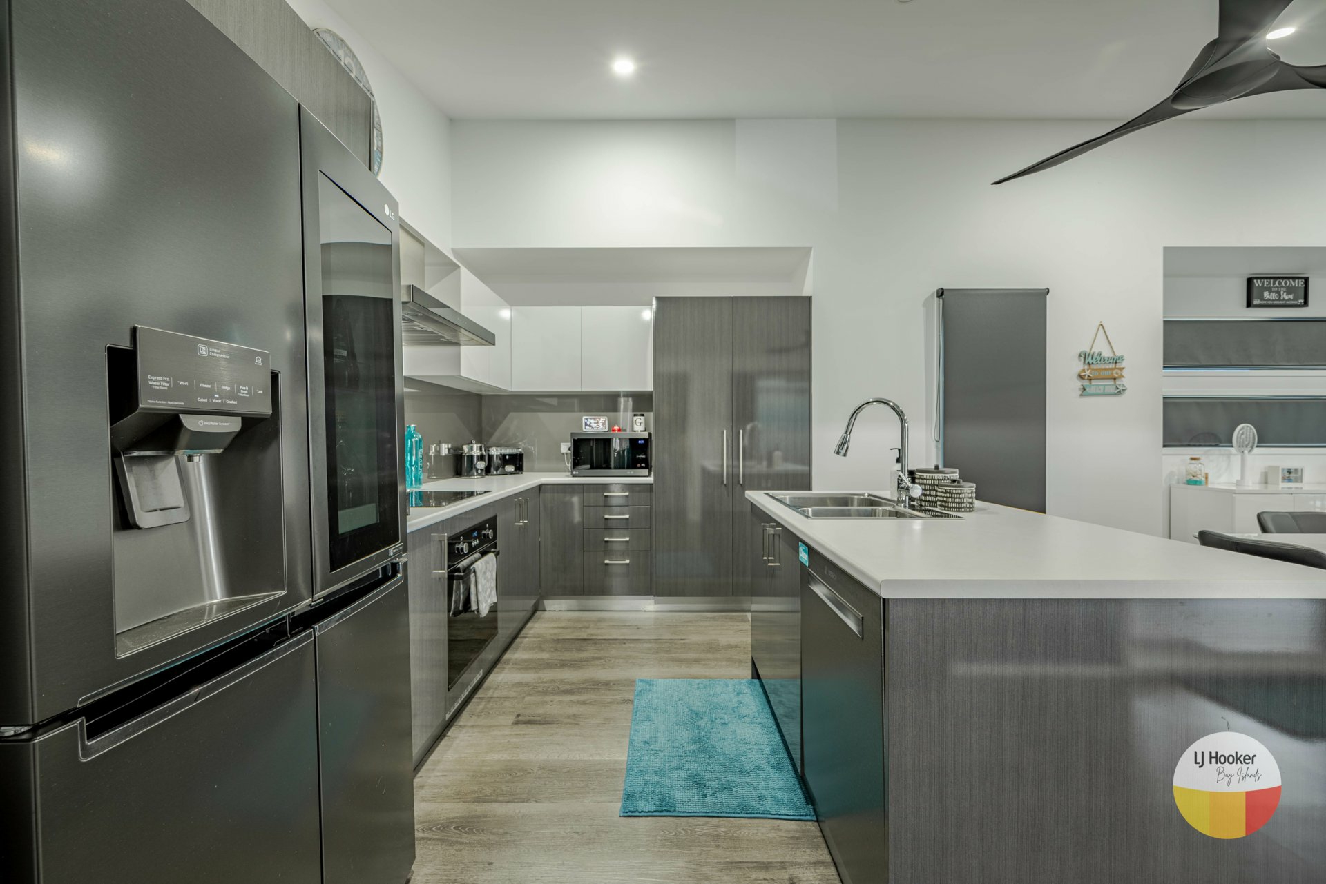 Designed with both sophistication and flexibility in mind, the property features a dual-living layout comprising two bedrooms and two bathrooms, connected by an expansive eco-composite entertaining deck that is truly exceptional in scale. Framed with sleek glass balustrading, this outdoor space offers a seamless indoor–outdoor flow and provides the perfect setting for refined entertaining or relaxed coastal living.