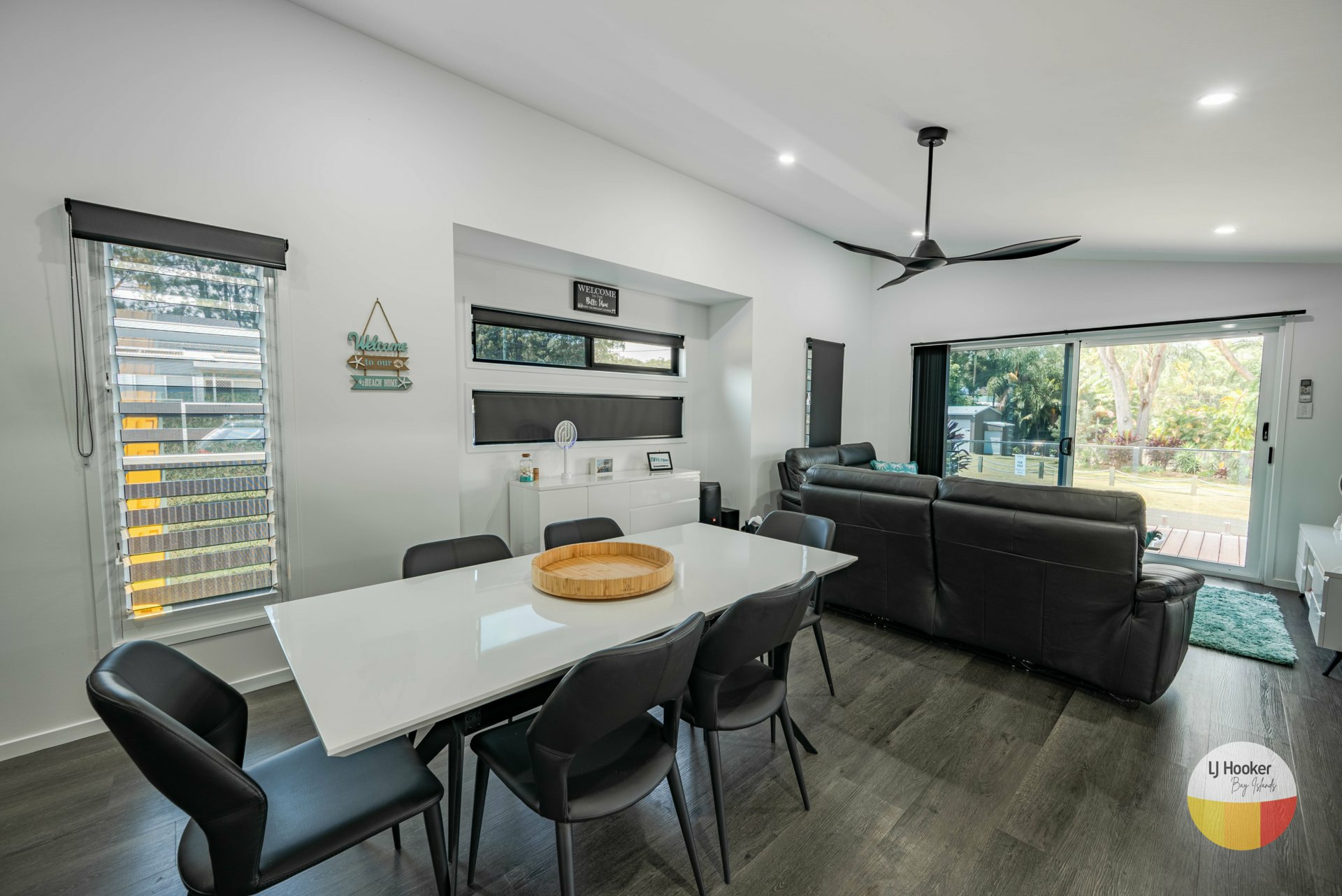 Situated on one of Russell Island’s most prestigious streets, this architecturally designed, custom-built residence is a standout offering of quality, lifestyle, and coastal elegance. Positioned on a sealed road corner allotment, the home enjoys captivating water views, enhancing its sense of tranquillity and exclusivity.