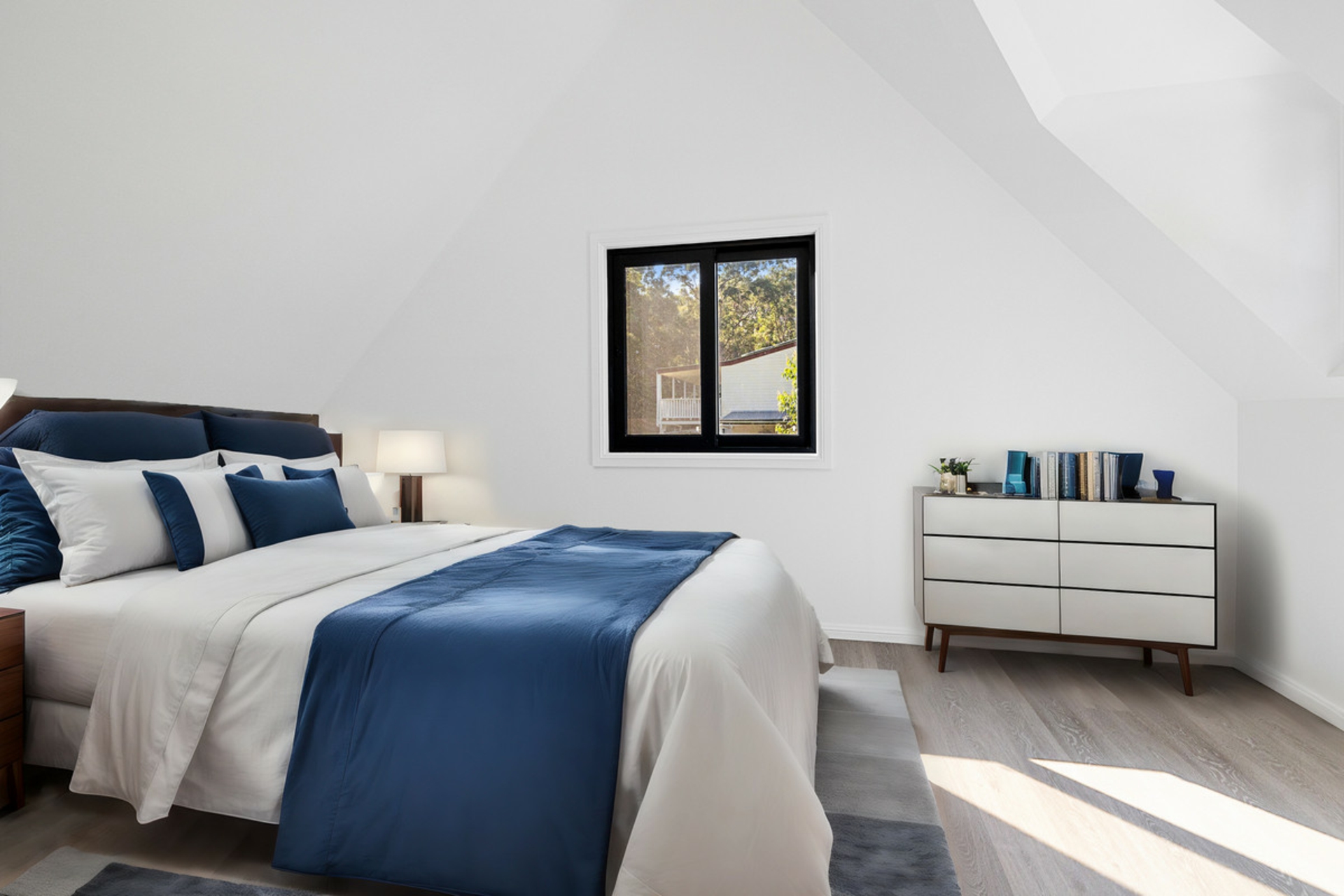 • Bedroom 1 or Extra living area with access to covered front deck through sliding glass door