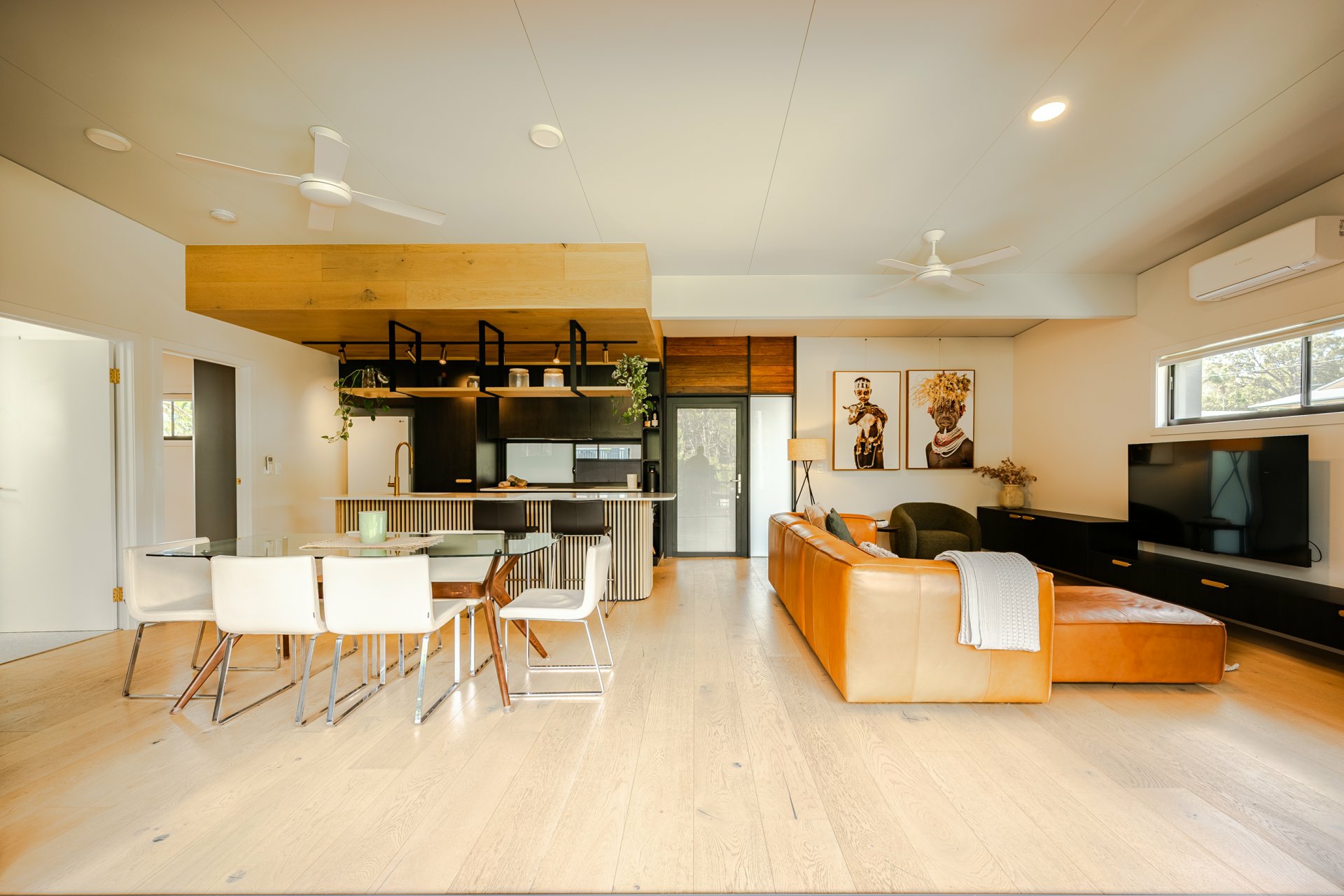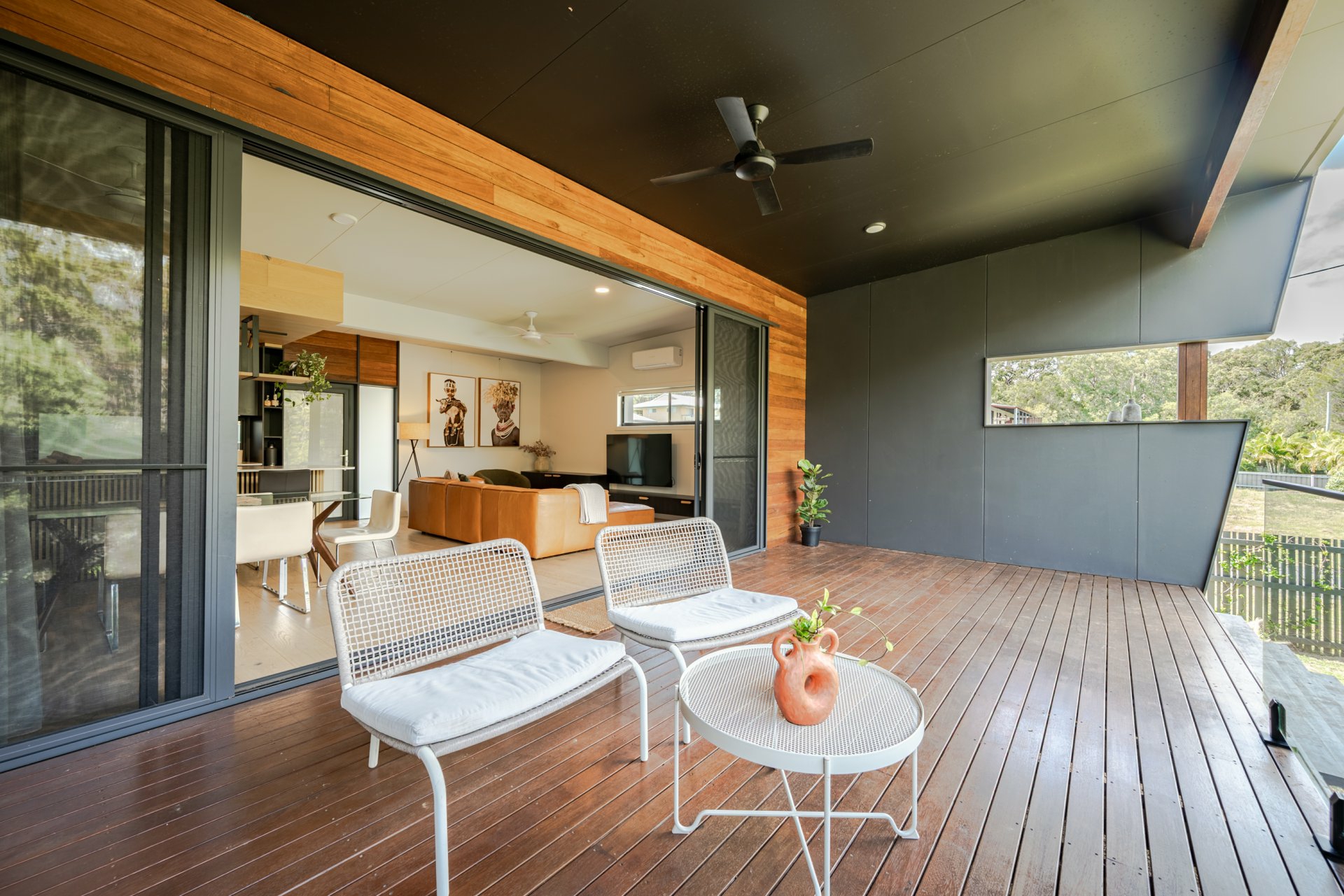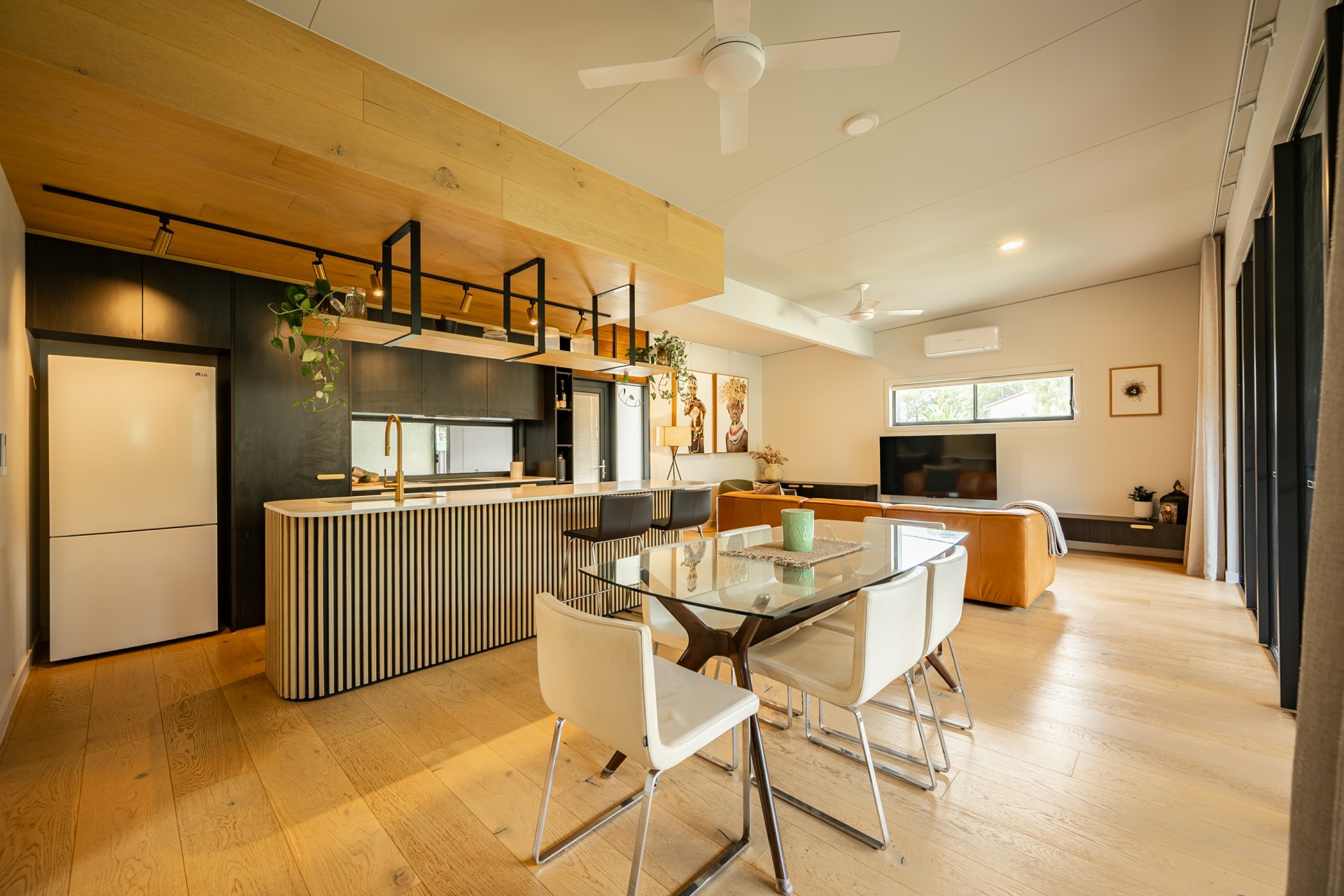 Open-plan living and dining areas seamlessly integrating indoor and outdoor spaces