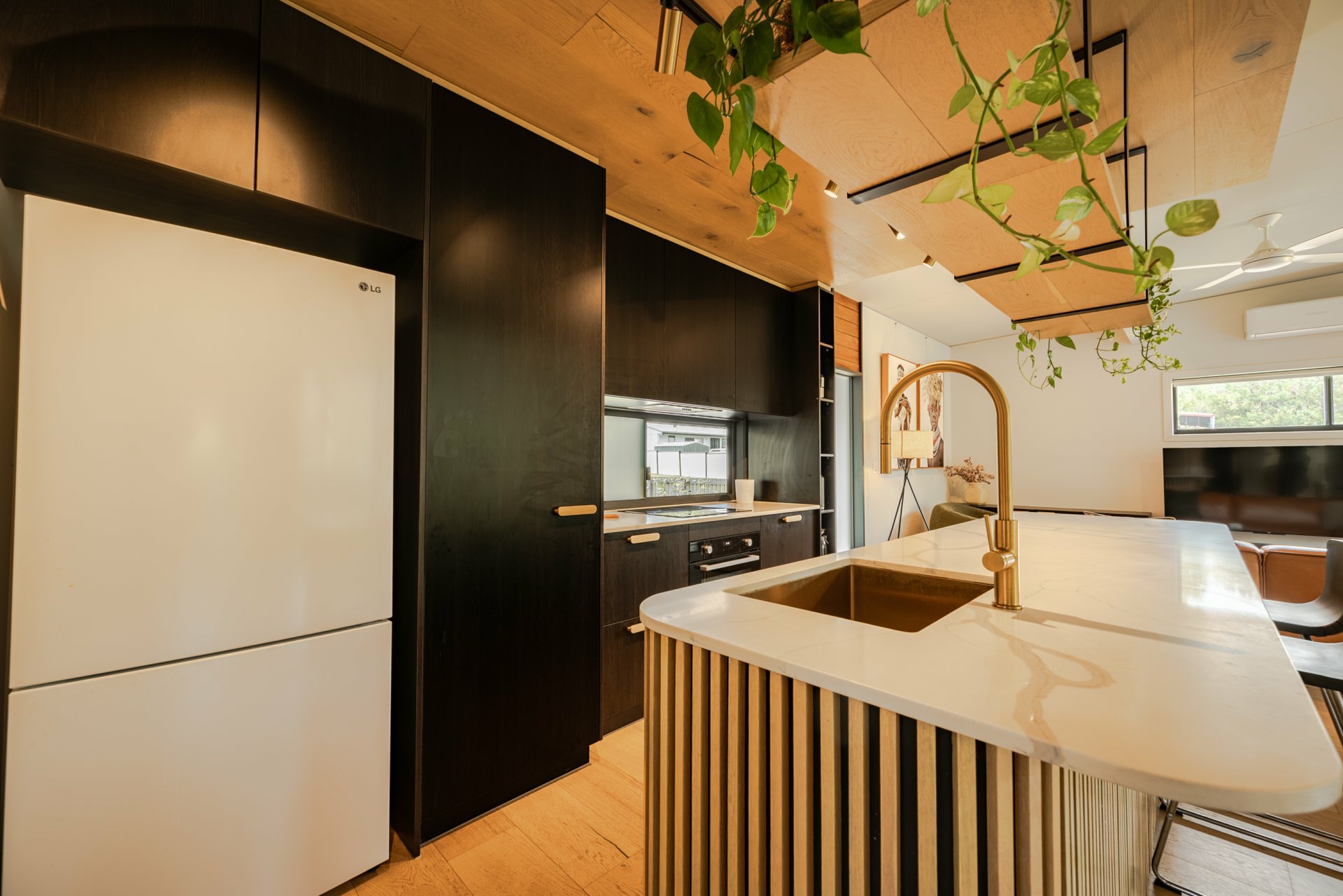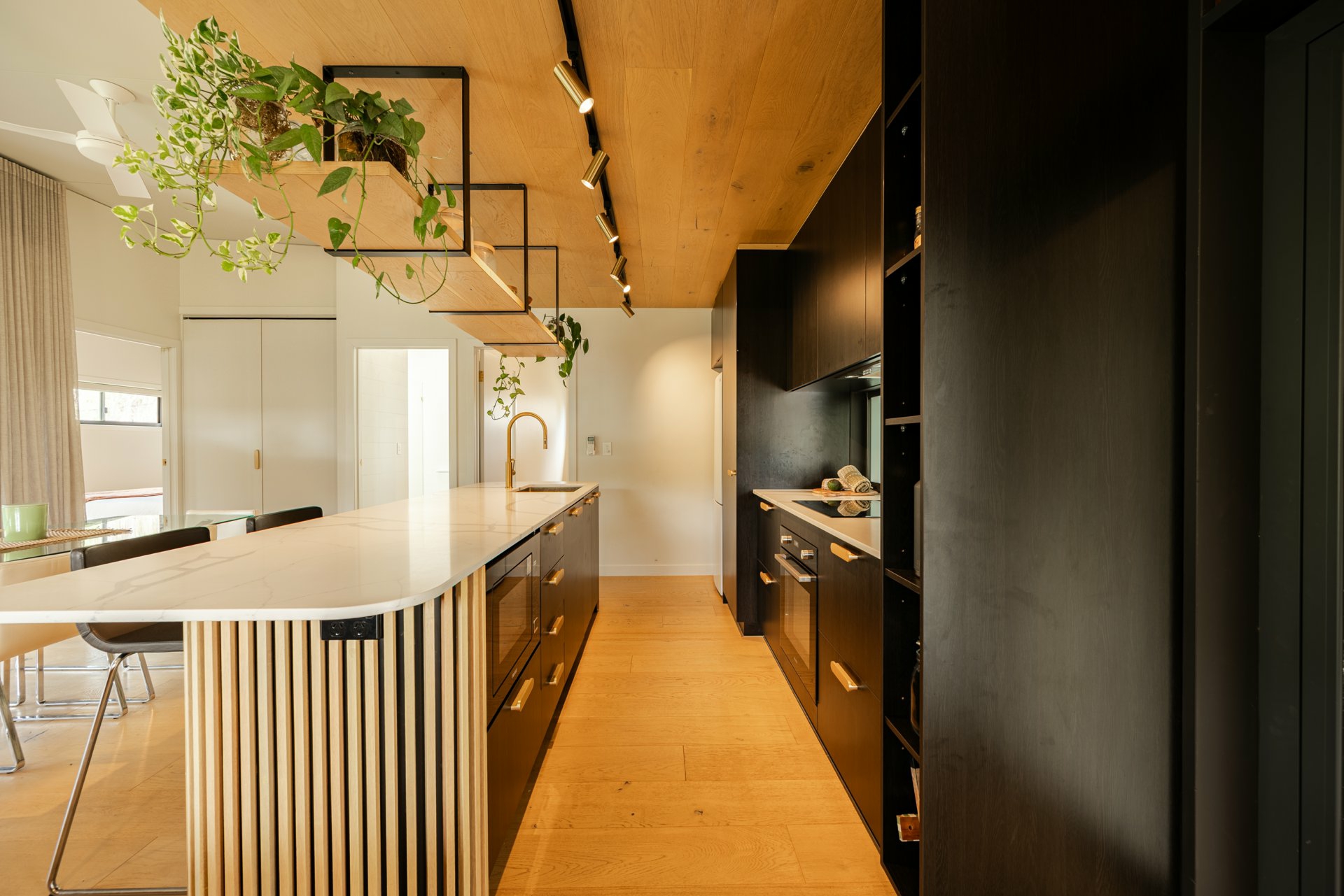 Gourmet kitchen with custom cabinetry, expansive stone benchtops, and high-grade appliances