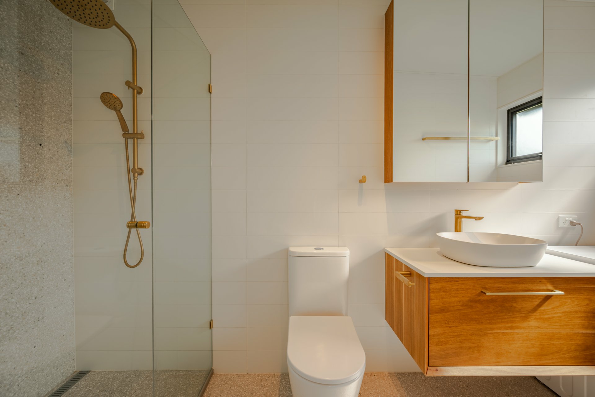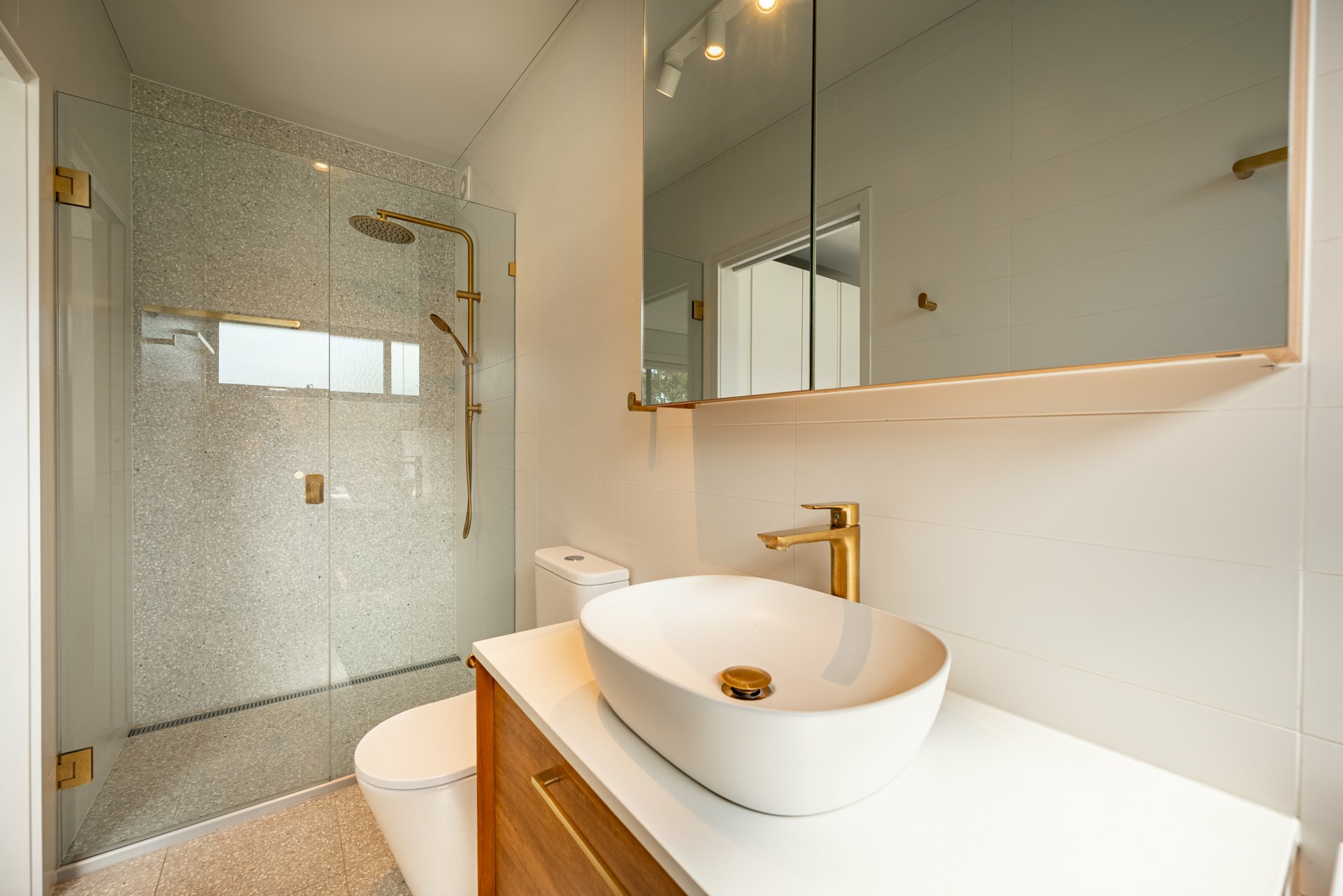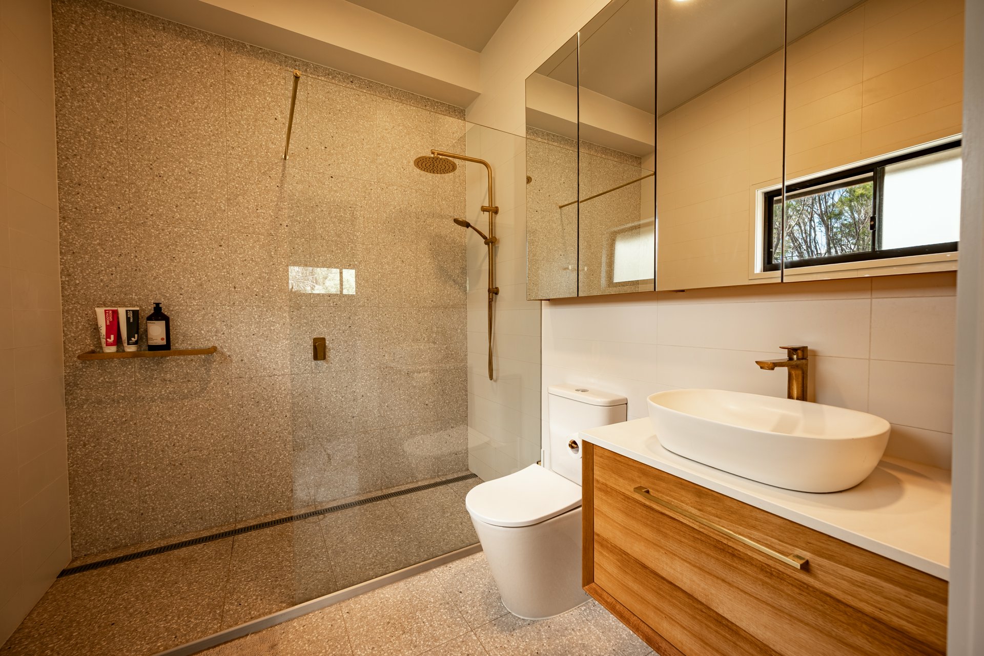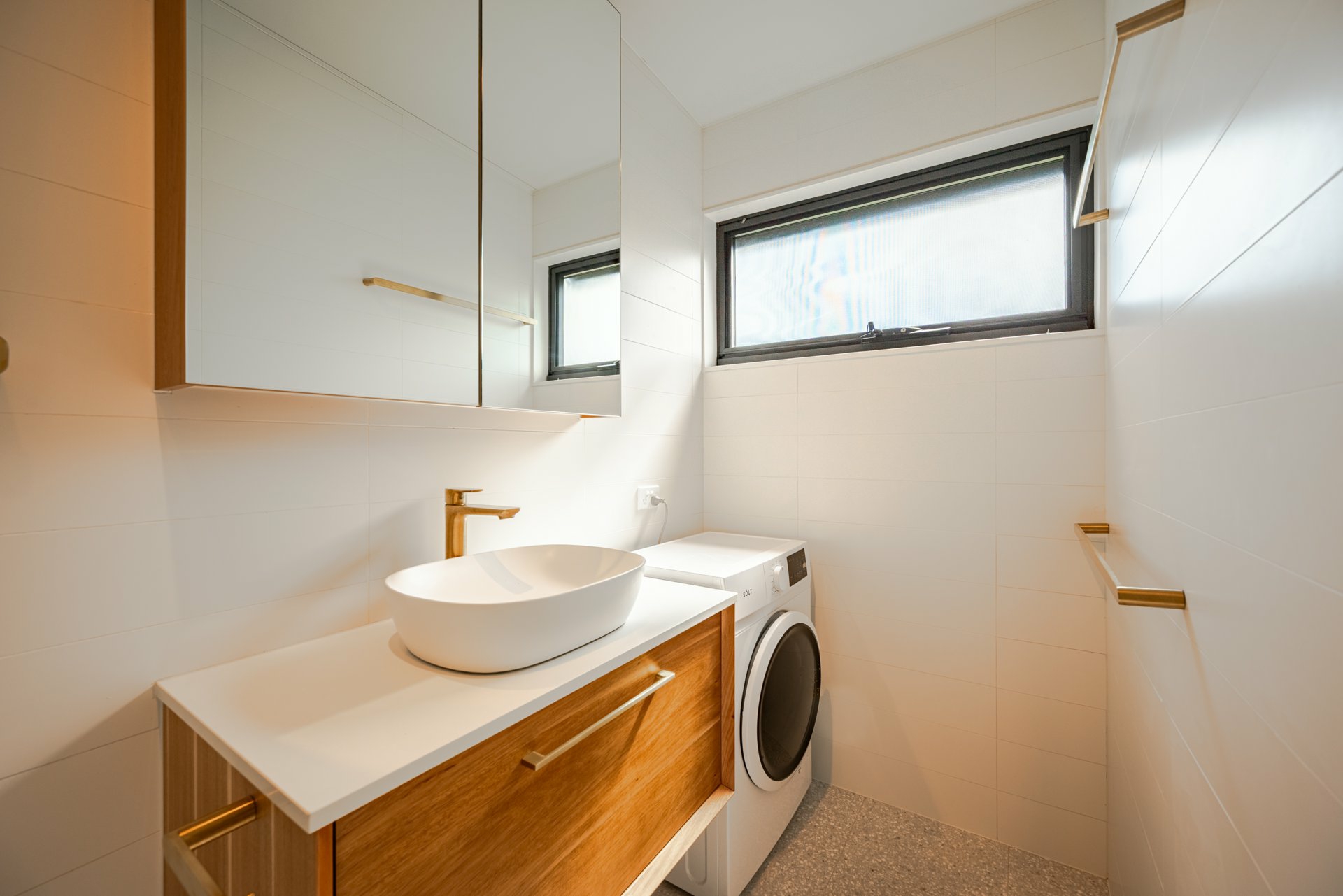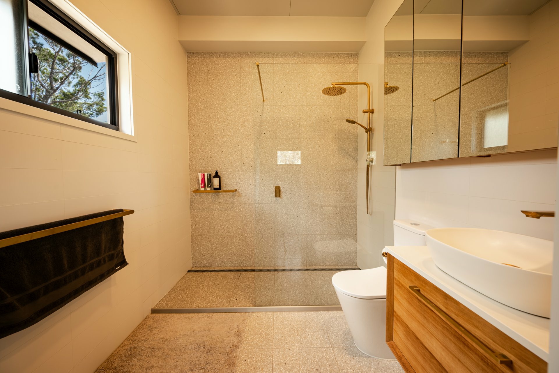 High-end tiling, premium tapware, and bespoke door and window fittings throughout