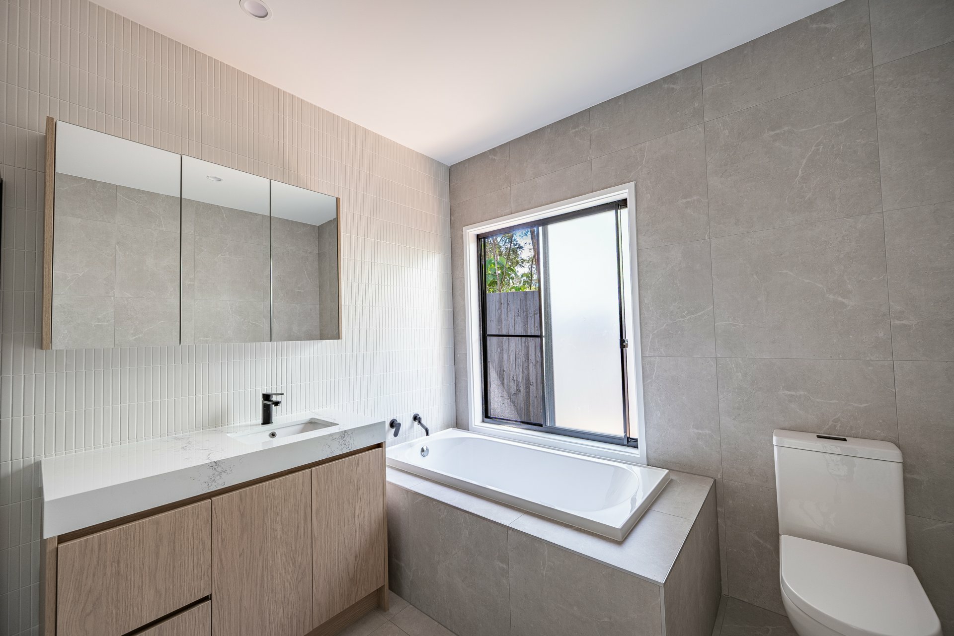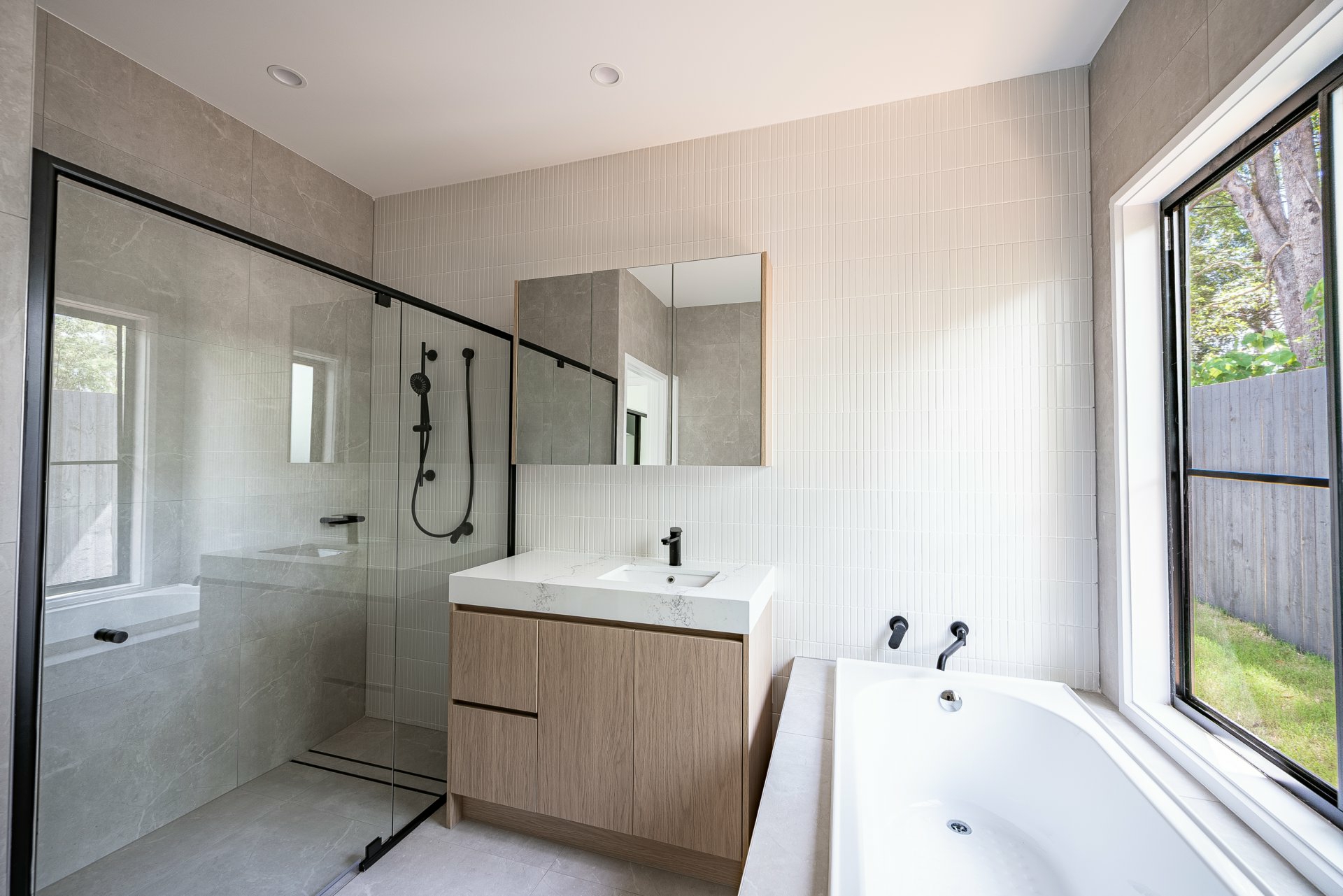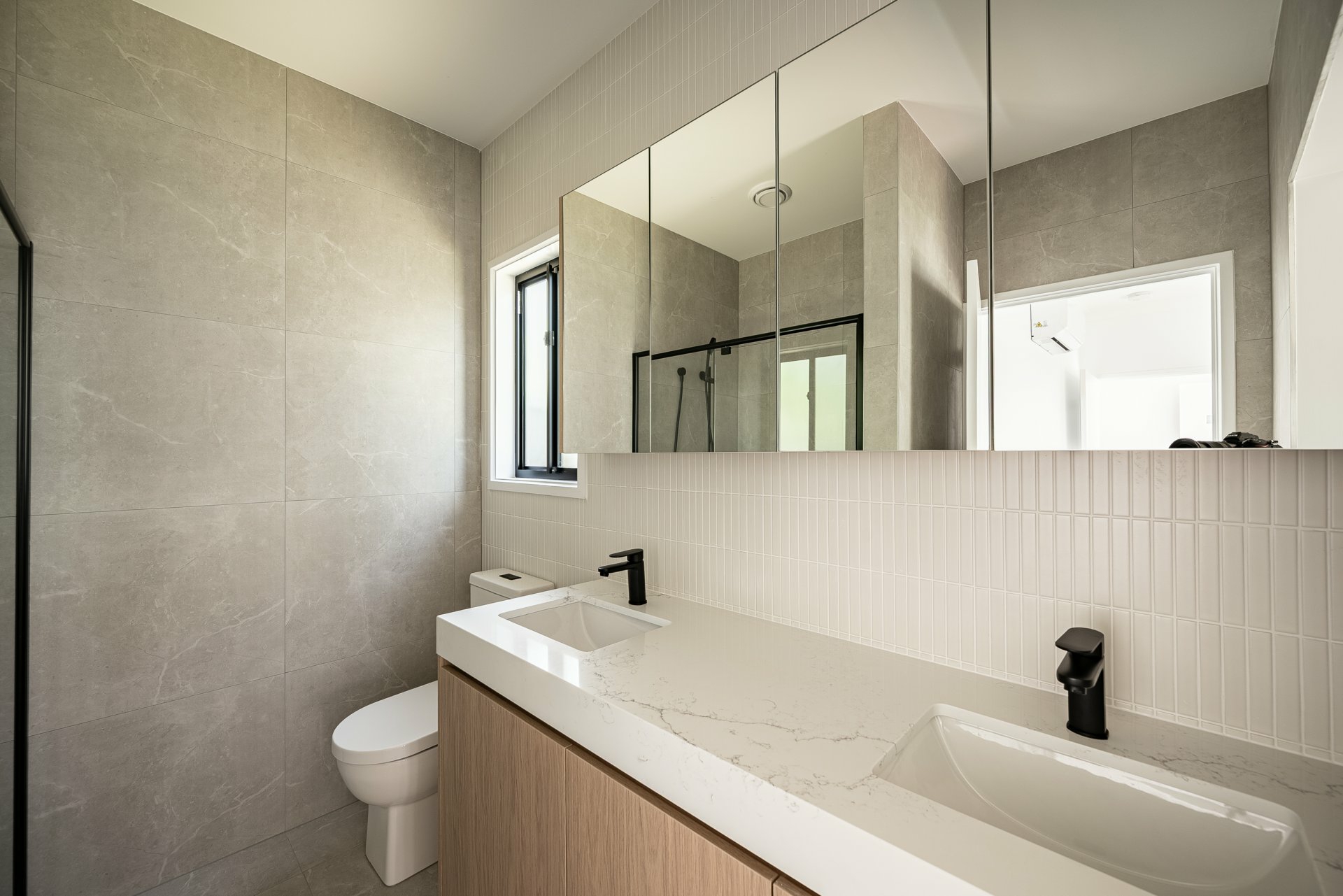 Both bathrooms are finished to a high standard, featuring eye-catching kit kat-style tile work that adds texture and a designer touch.