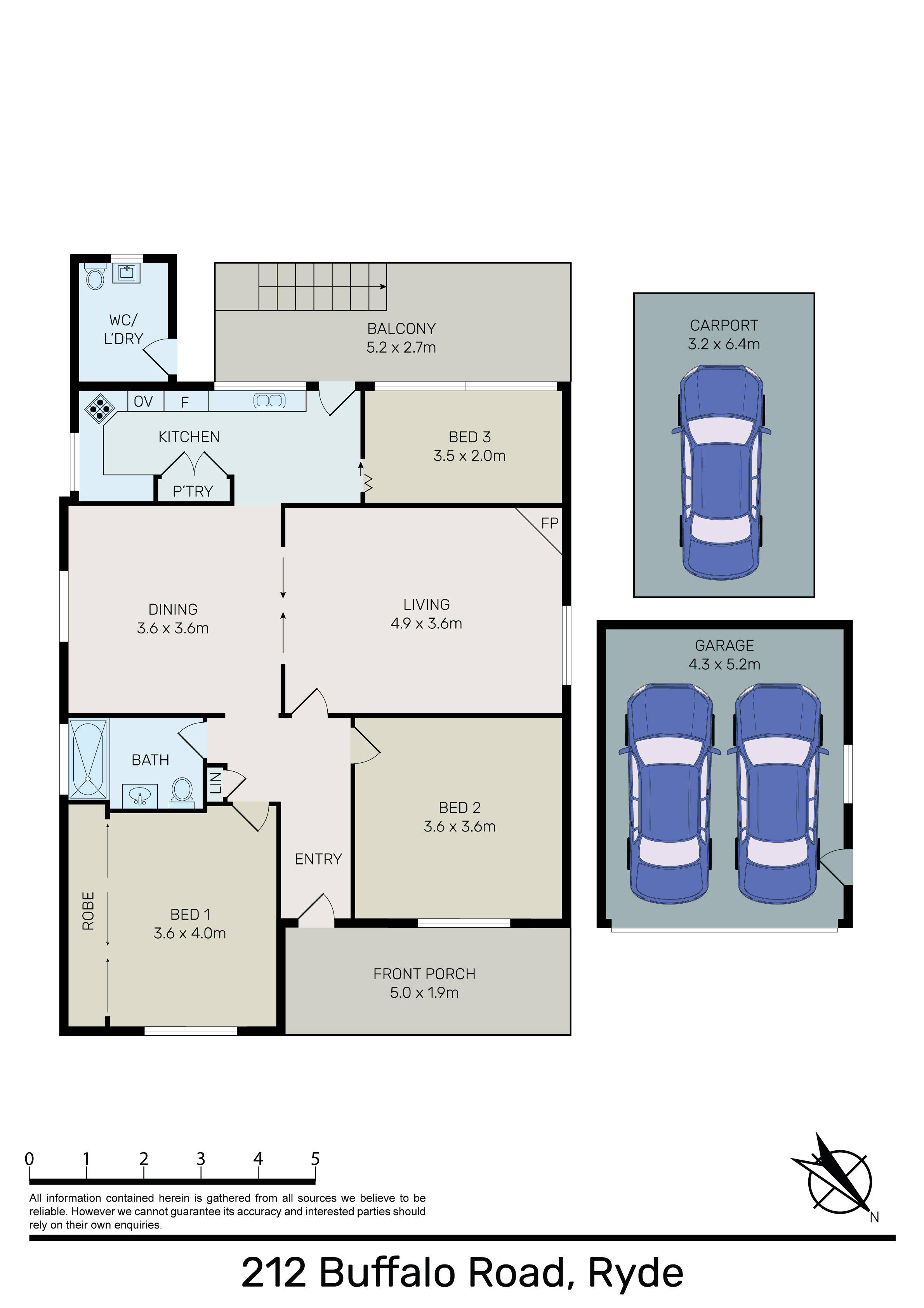 • 1 undercover garage plus a driveway that accommodates up to 5 vehicles