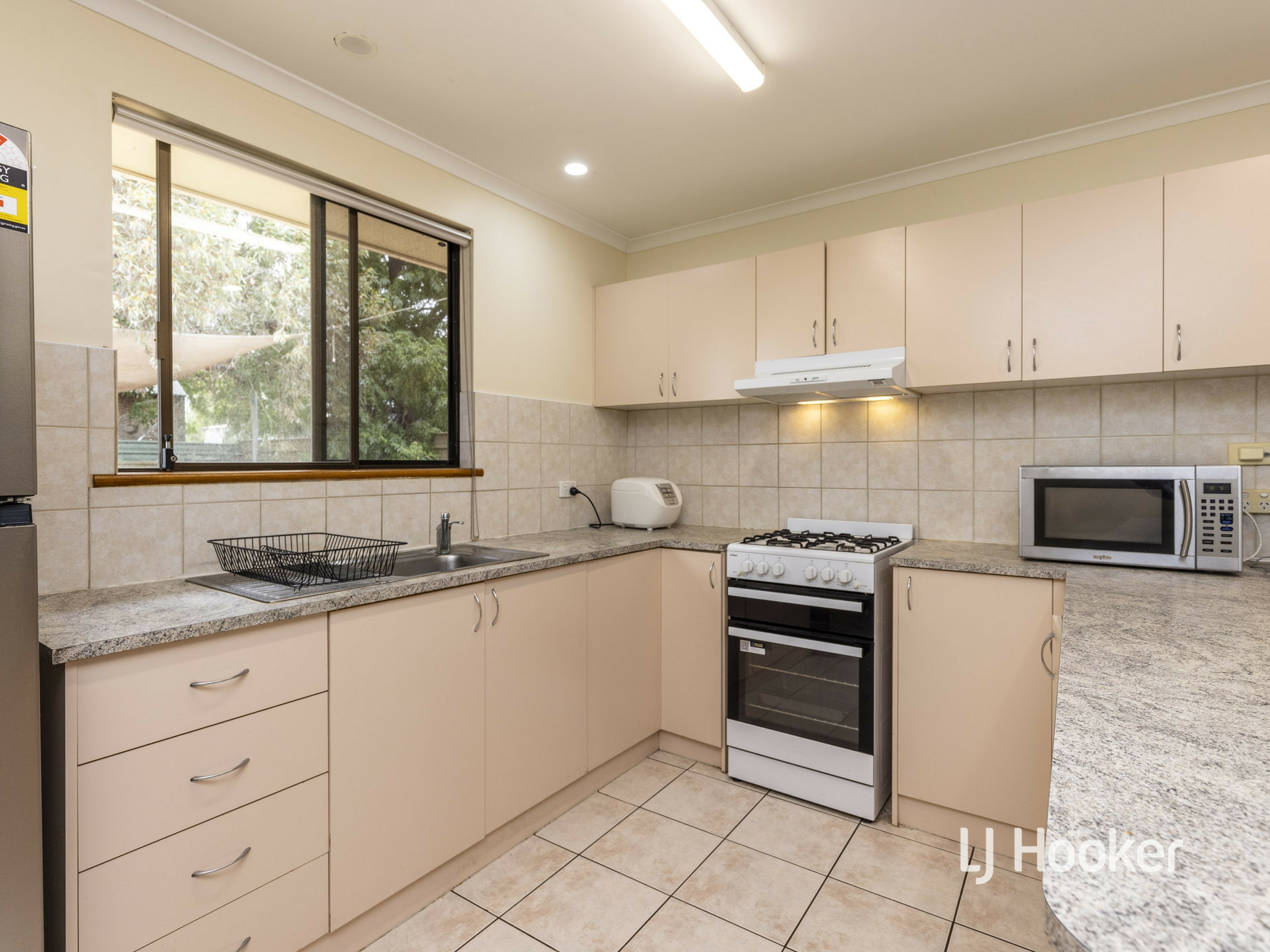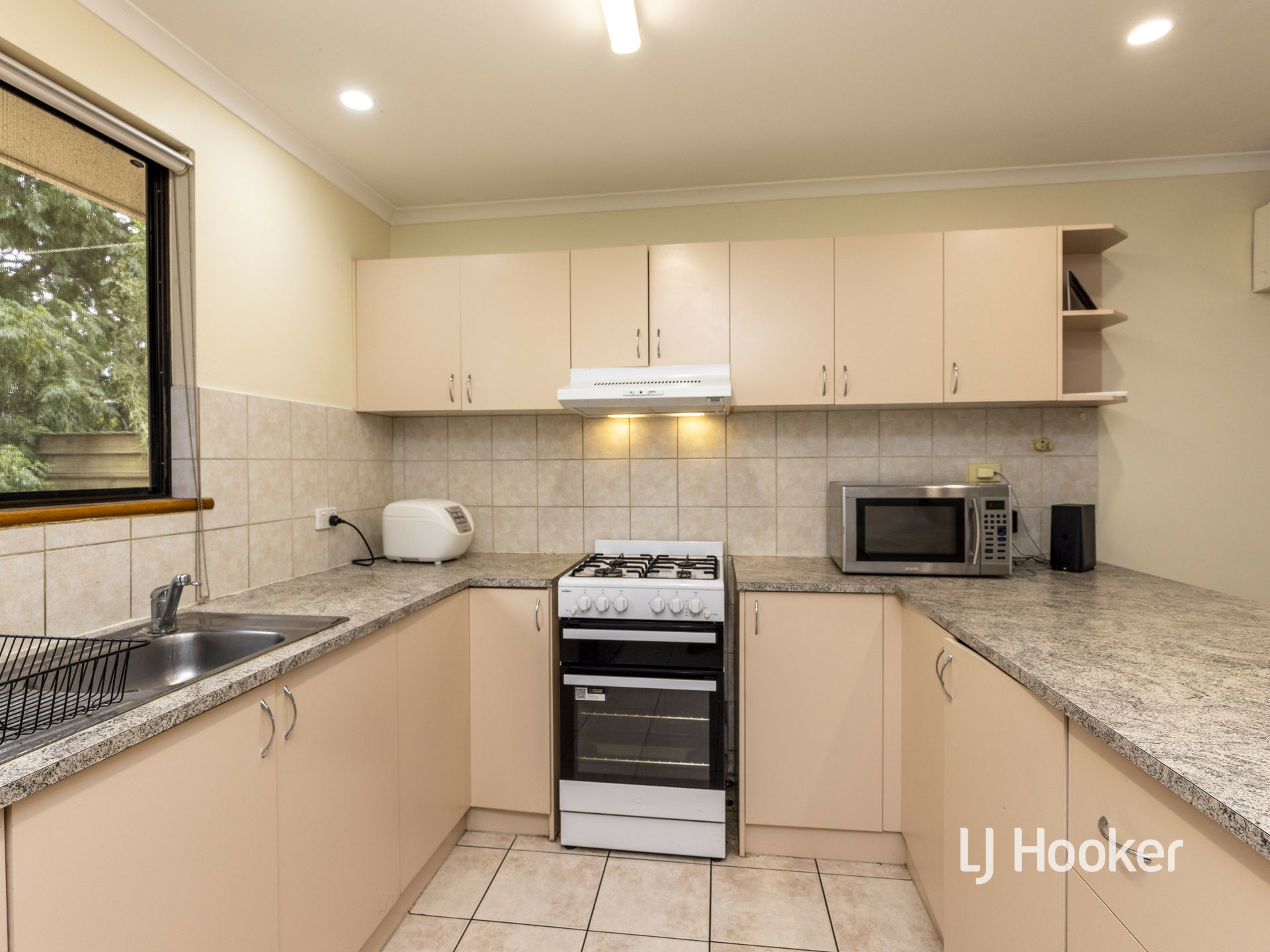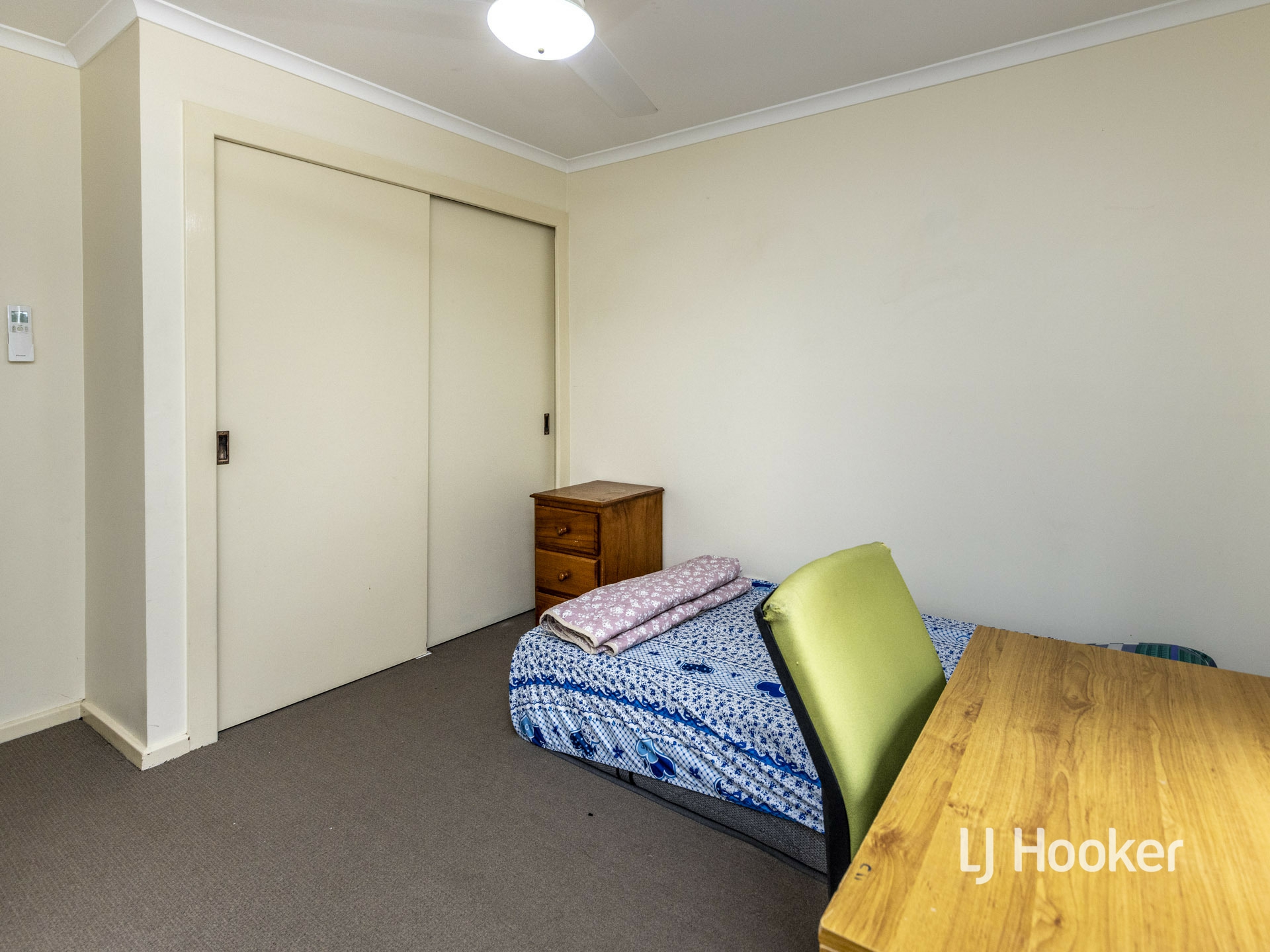 The designated dining area is adjacent the kitchen and the open plan living area. All bedrooms include built in robes, ceiling fans and vertical blinds.