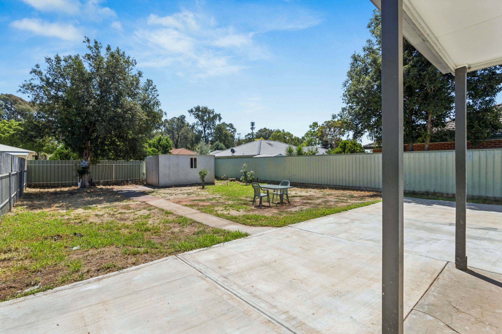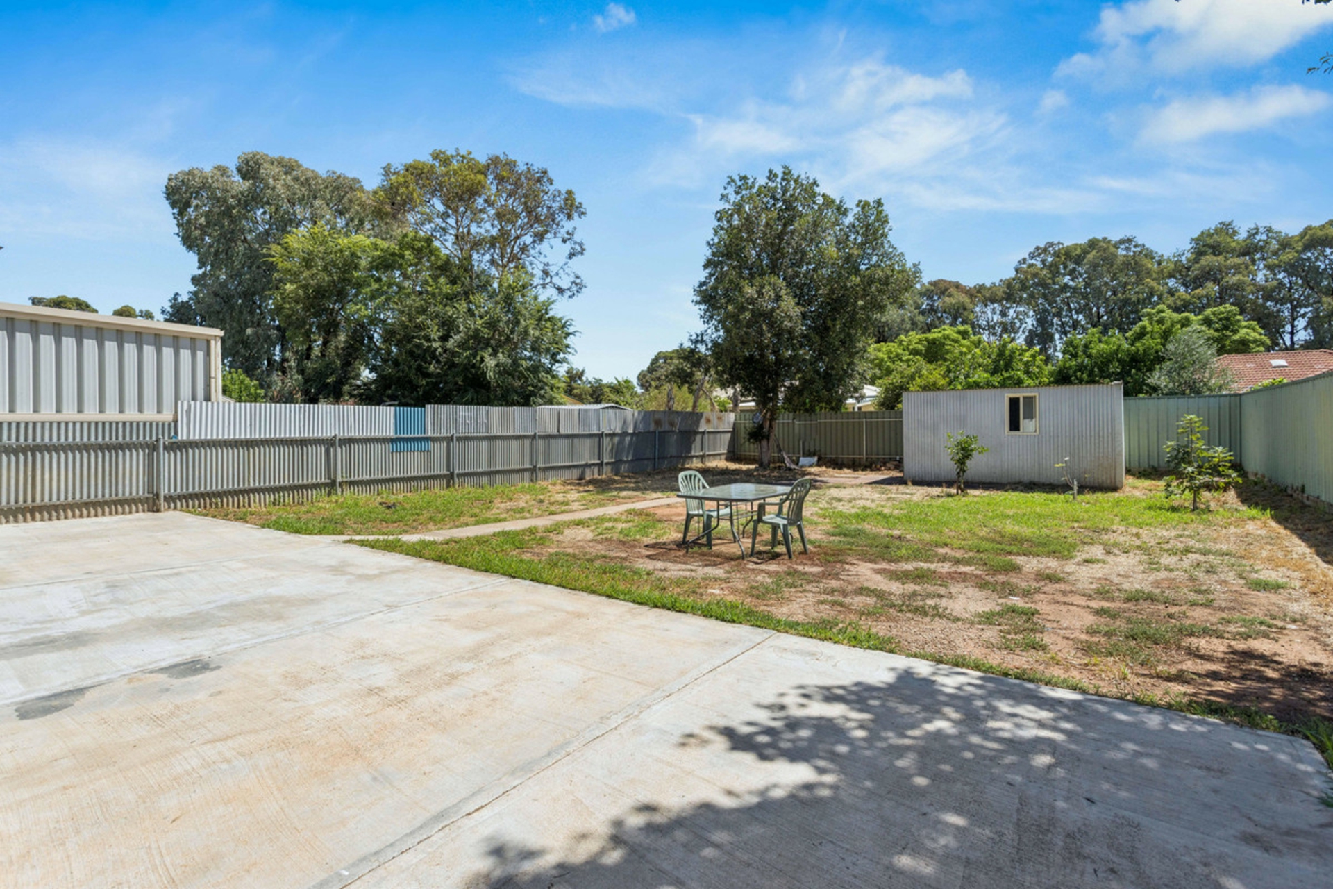 • Large open backyard with garden shed