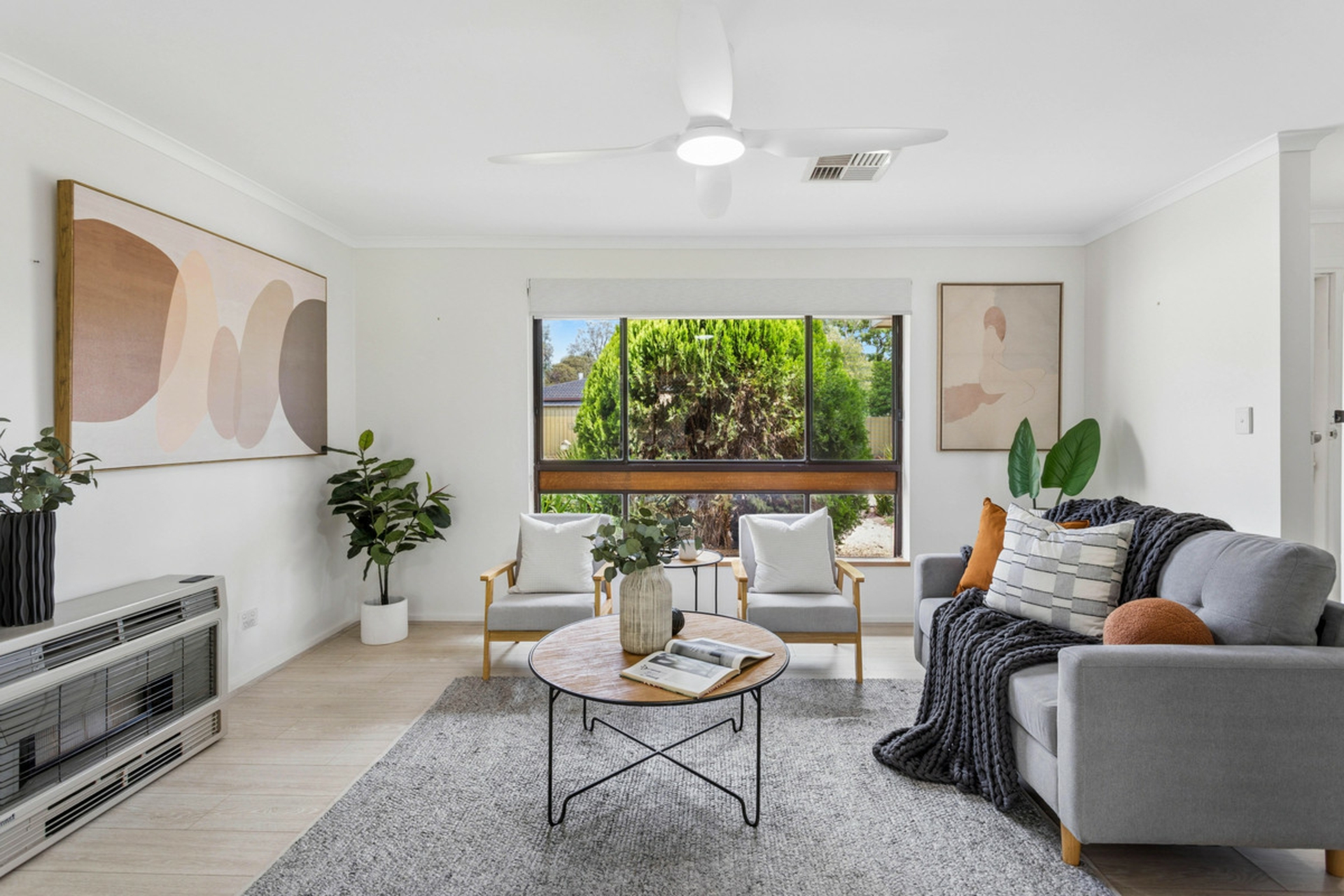 Inside, the home has been tastefully refreshed to offer easy modern living. Comprising three well-sized bedrooms, comfort is assured year-round with ducted reverse cycle air conditioning, ceiling fans to all bedrooms and the lounge, plus an additional gas heater for extra warmth and convenience.