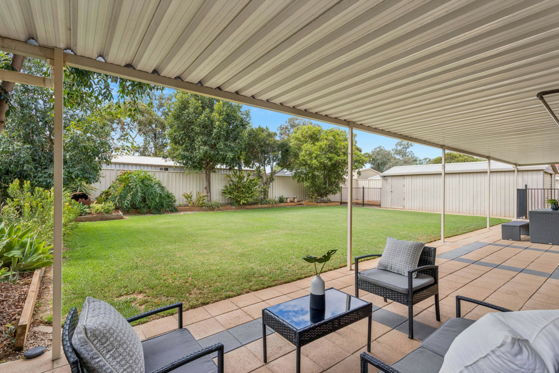 Step outside and embrace a relaxed, family-friendly lifestyle designed for year-round enjoyment. The full-length veranda creates the perfect setting for weekend barbecues, long lunches with friends or simply unwinding with a morning coffee while overlooking the expansive backyard. There's an abundance of space for children to play freely, pets to roam and for future garden or outdoor living ideas to come to life. An established irrigation system keeps the lawn looking lush and green with minimal upkeep, so you can spend more time enjoying the space rather than maintaining it.