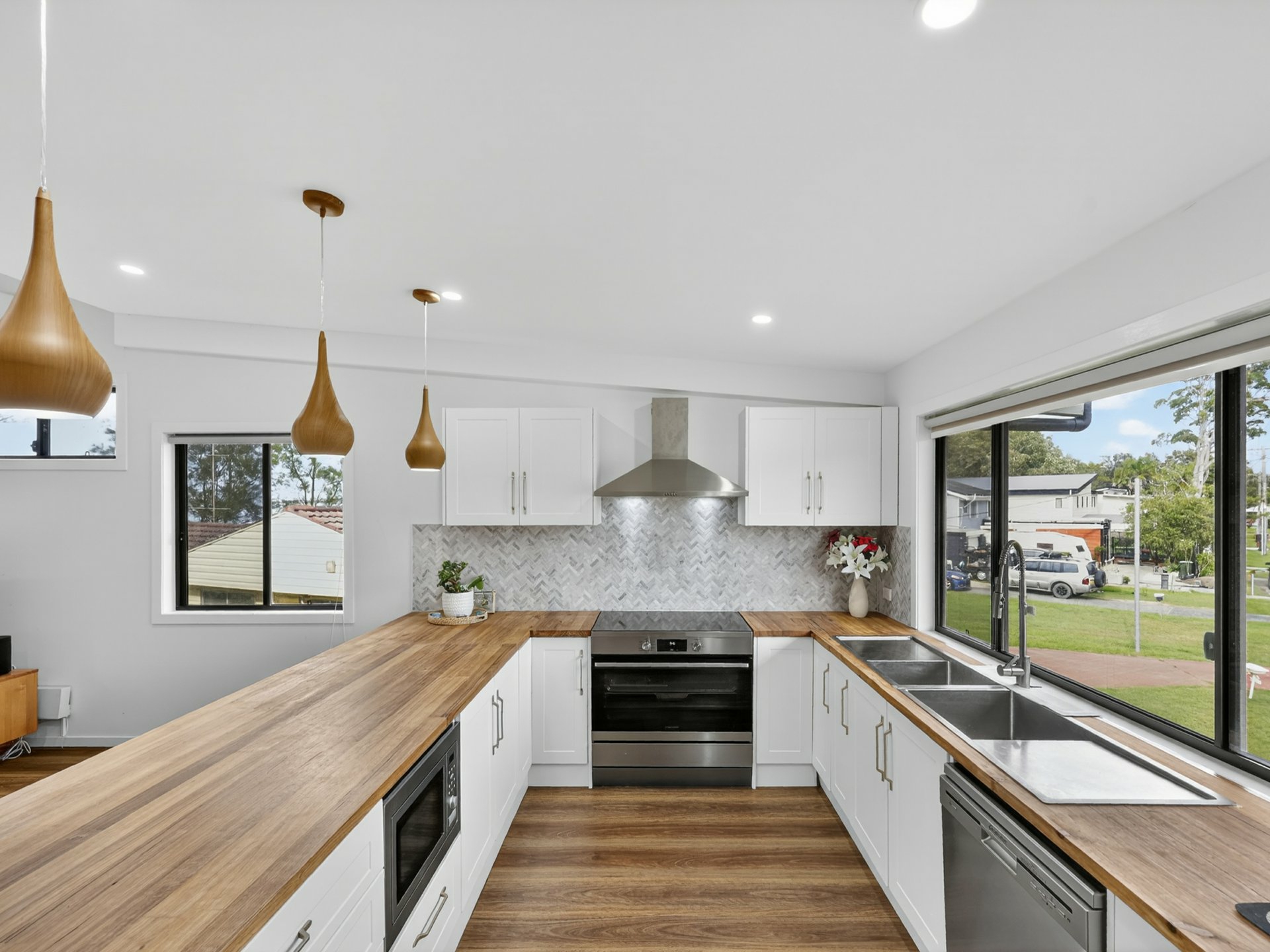 From the moment you walk inside, you’ll feel it—the space, the light, the quality. High ceilings create an airy, open feel, while rich spotted gum flooring brings warmth & understated luxury throughout. Every detail has been carefully considered, from the solid hot dip galvanised steel frame to the stylish finishes that make everyday living feel just that little bit special.