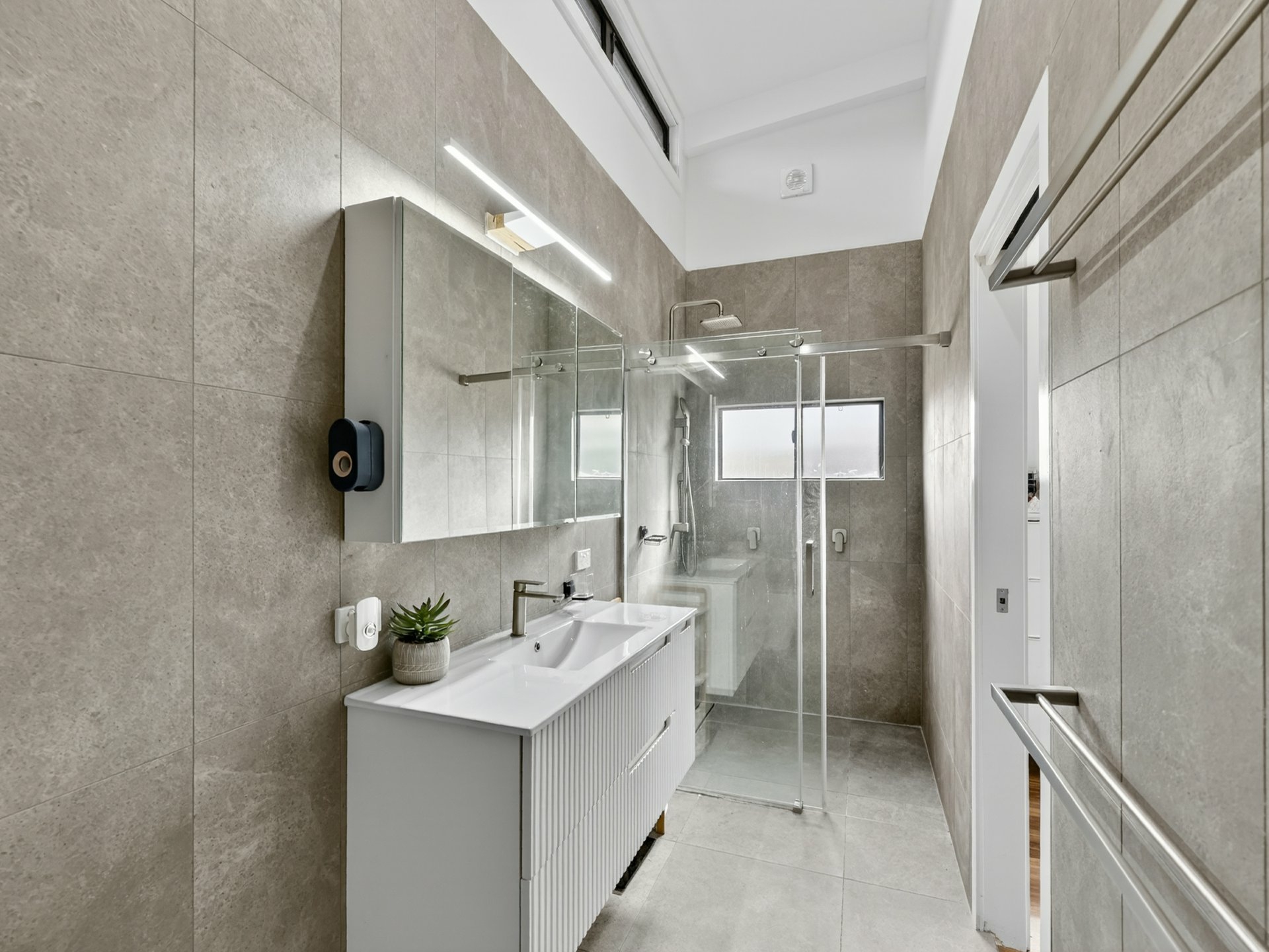 2 sleek, modern bathrooms with a refined finish