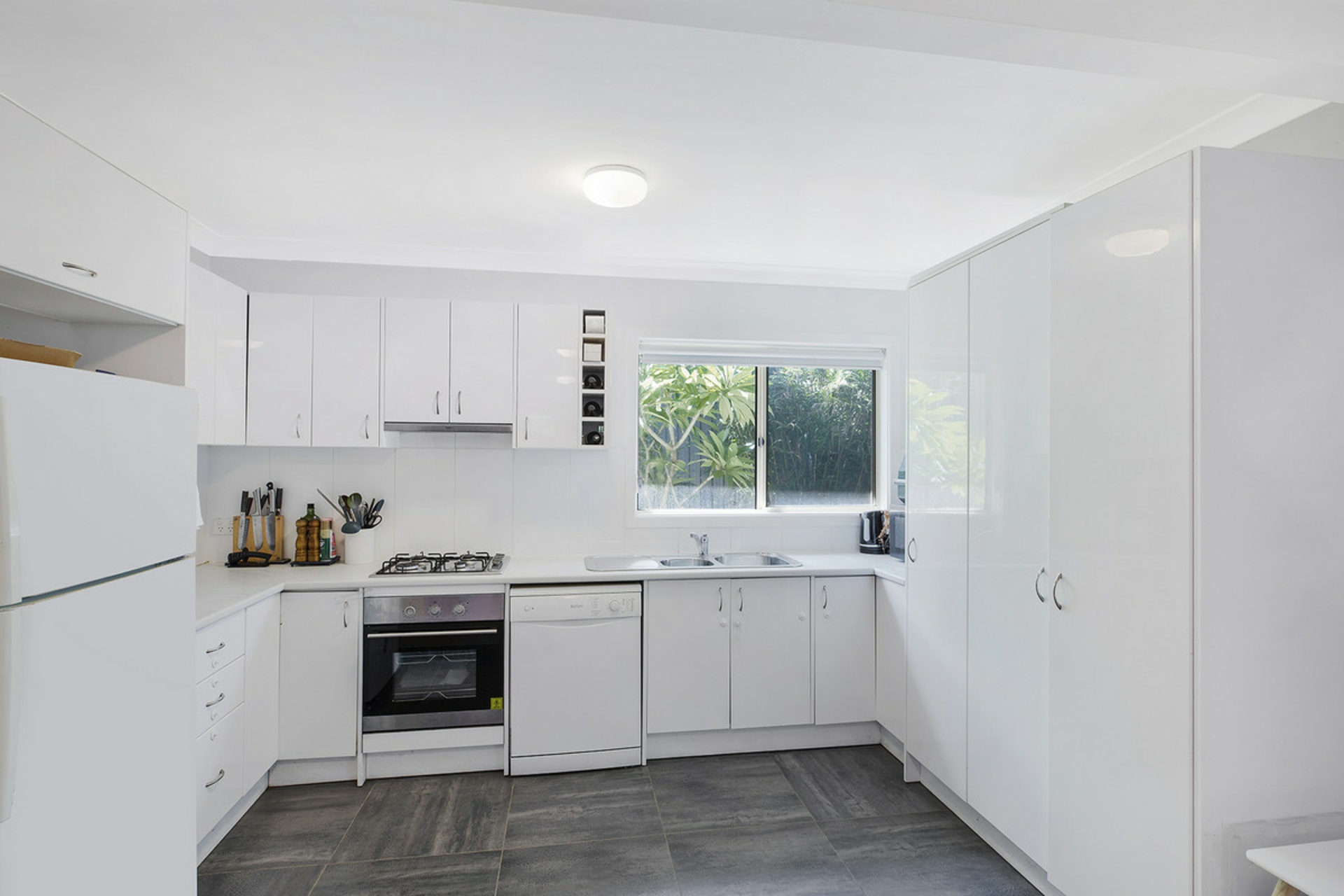 •Modern kitchen with gas cook top, dishwasher and plenty of storage.