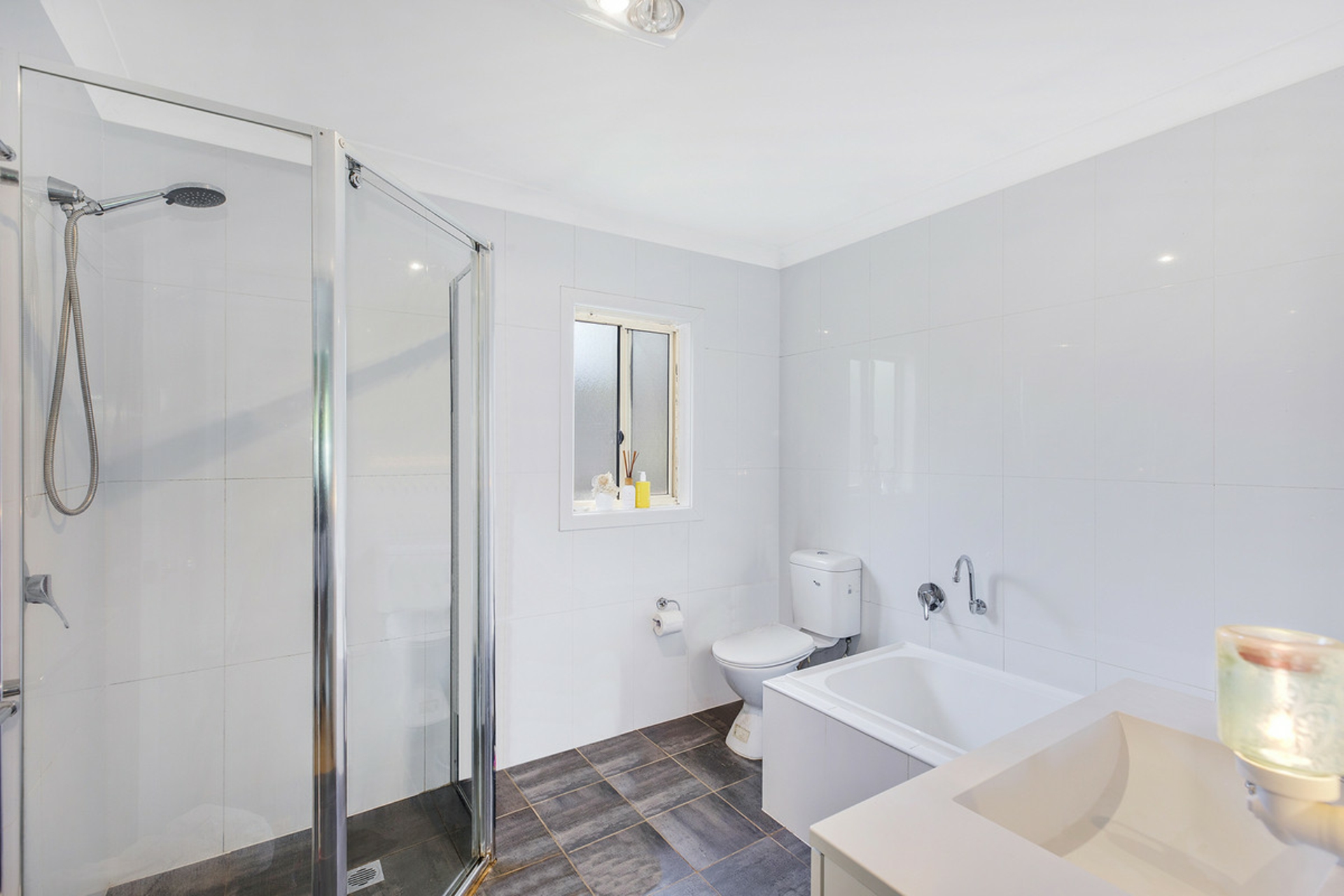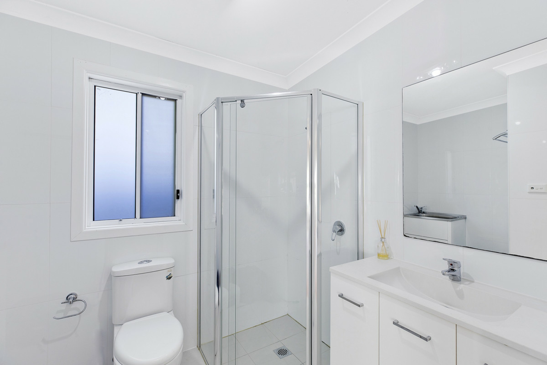 •Combined bathroom and laundry.