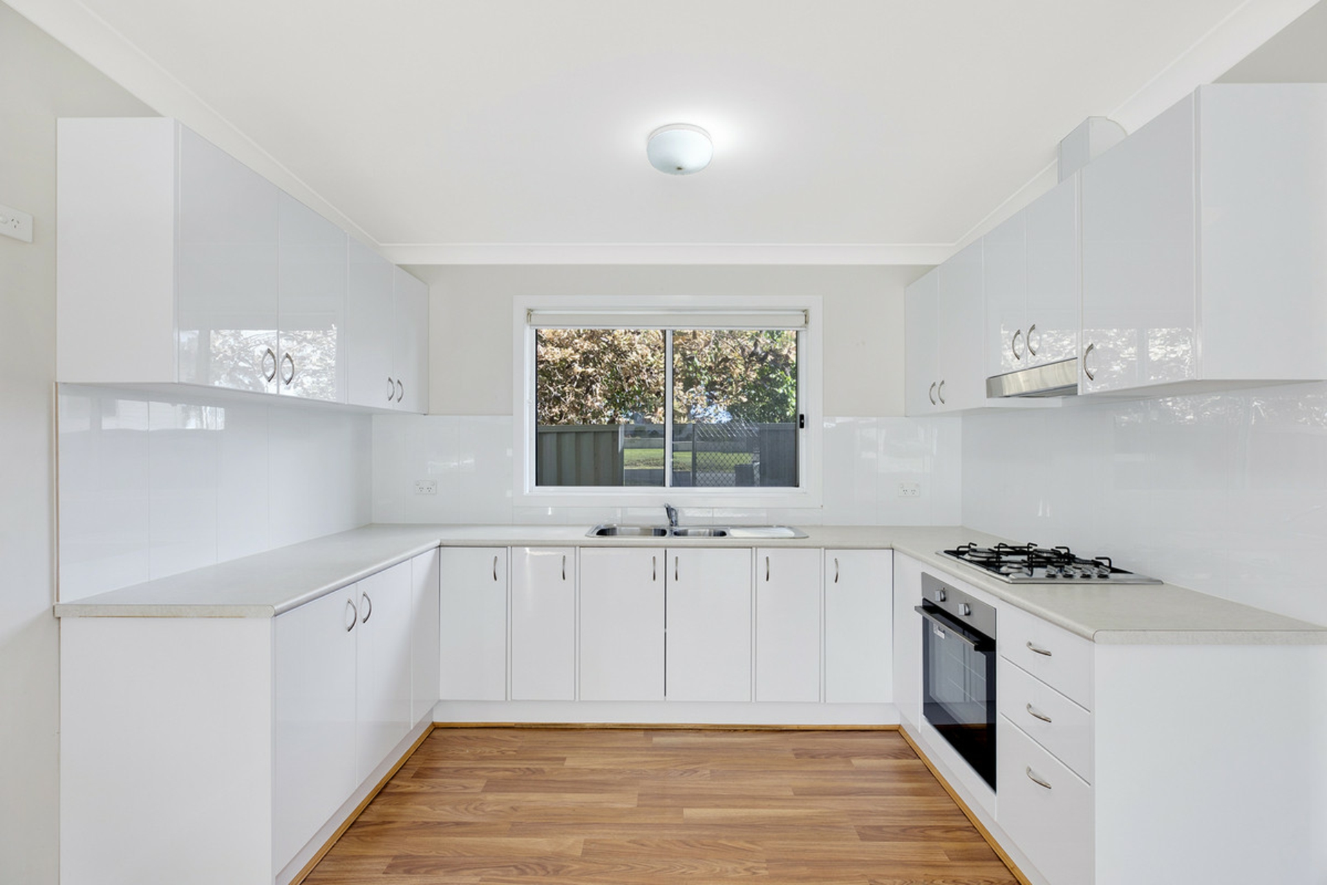 •Modern kitchen with gas cooking.