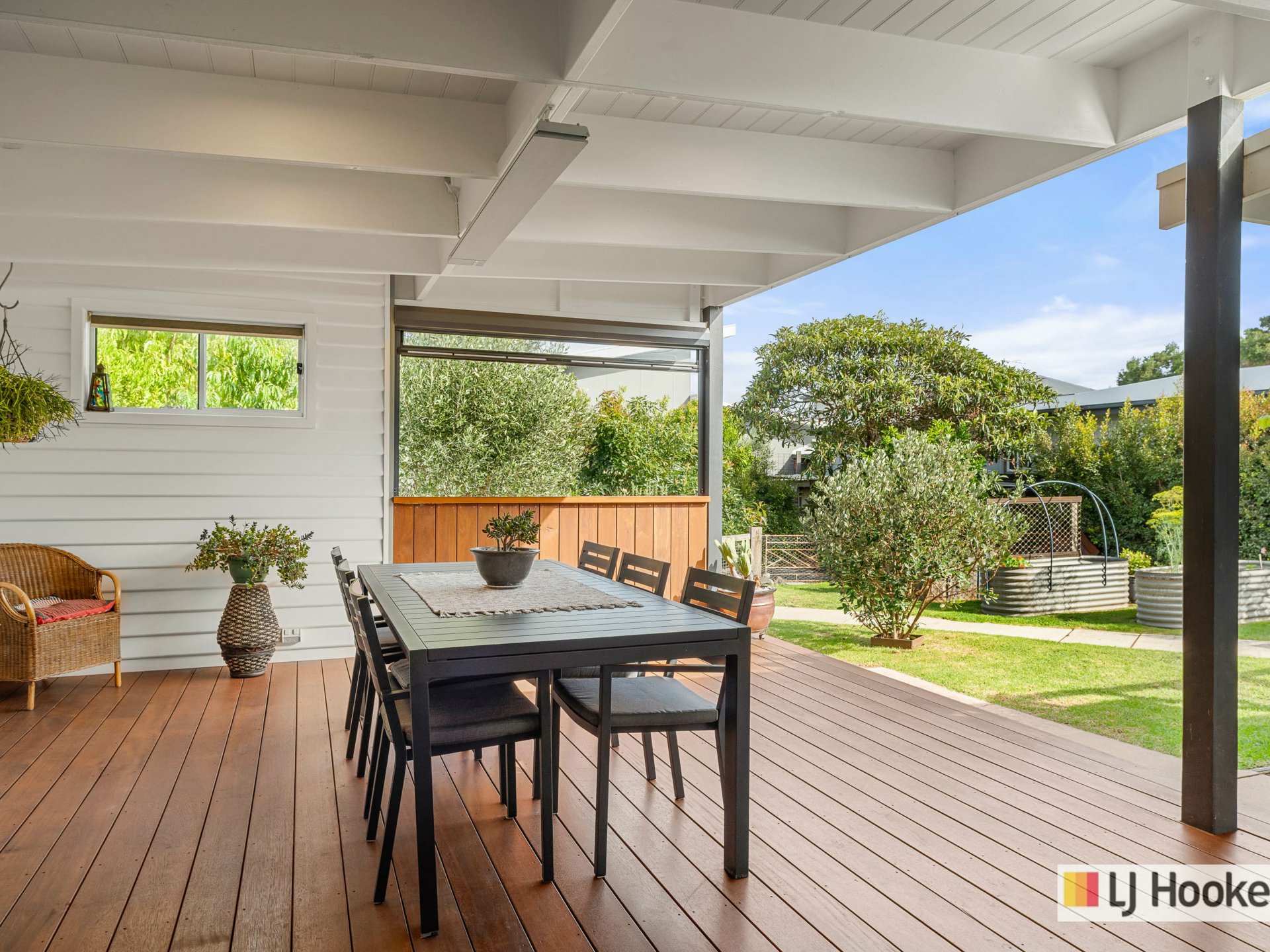 The home is one of San Remo’s original houses and has been tastefully renovated over the years and lovingly cared for. It has old world charm with timber weatherboards, double hung timber windows, a new colourbond iron roof and original solid timber hardwood flooring throughout. The living area has a woodfire heater and reverse cycle split system for year round comfort. The kitchen is fitted with quality appliances, a butlers pantry and a bi-fold window connecting it to the outdoors and the stunning alfresco area, complete with an outdoor kitchen including a gas BBQ, canopy rangehood and drinks fridge. Stunning merbau decking and electric heater make this a place you will want to entertain friends and family all year round. Two bedrooms share the centrally located bathroom and the third bedroom has its own ensuite. A European style laundry, a separate powder room and three skylights letting in natural light throughout, round out the home.
