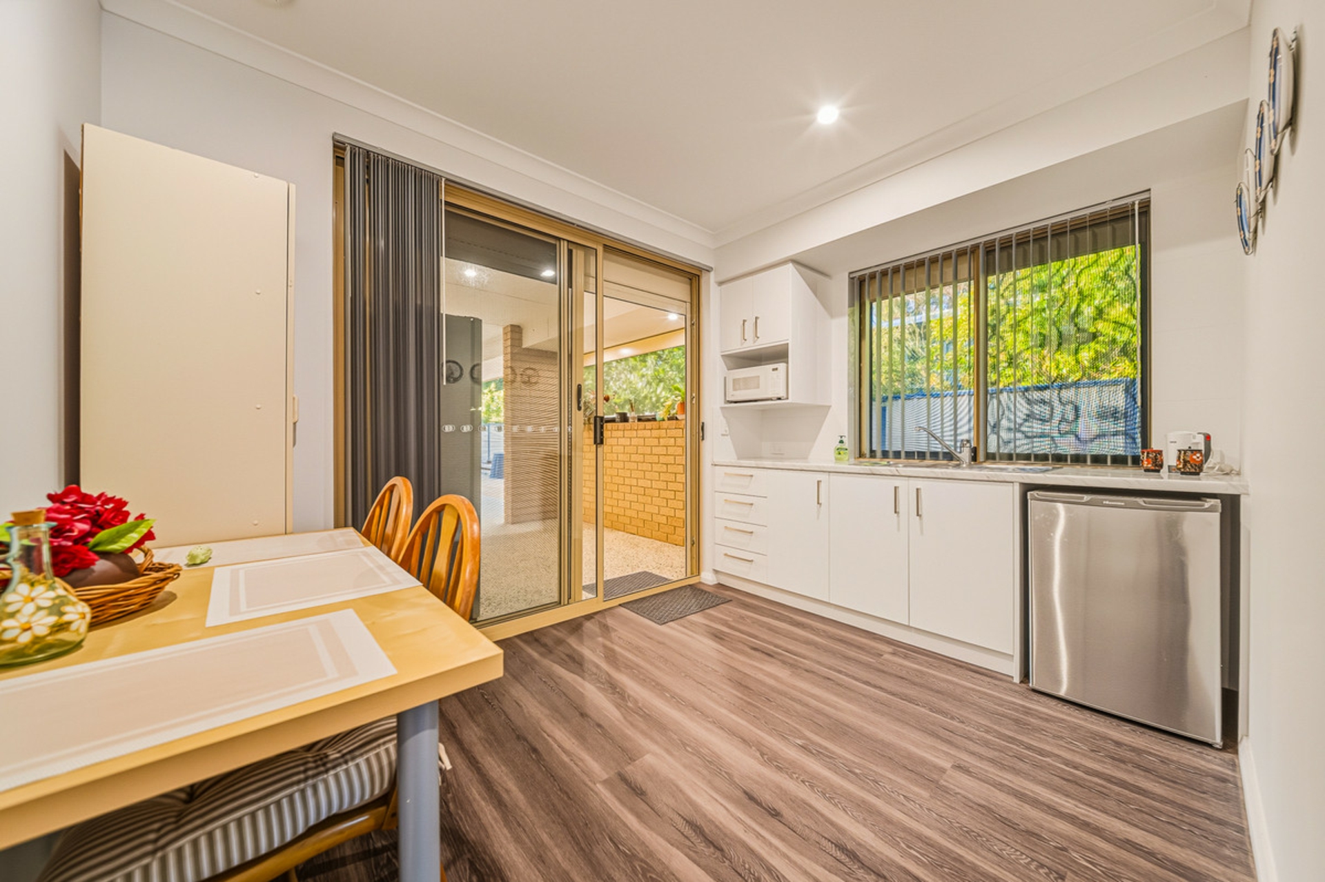 The main residence is a beautifully presented 4-bedroom, 2-bathroom home showcasing a bright, light-filled interior with charming exposed brickwork, multiple living zones and a thoughtfully renovated and expanded kitchen. Designed for both everyday living and entertaining, the open-plan layout flows seamlessly to a spacious alfresco area complete with two ceiling fans, making it perfect for year-round enjoyment.