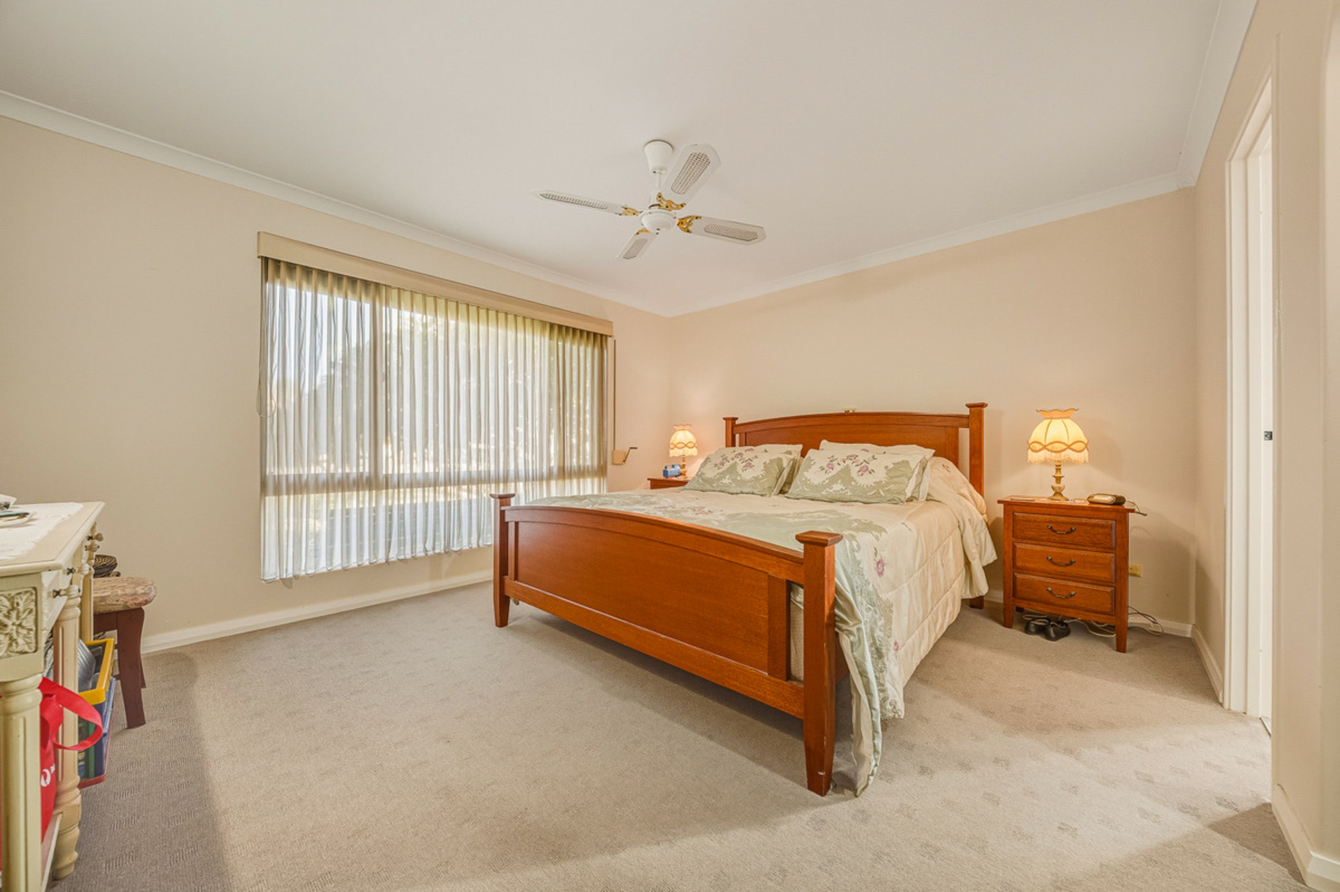 Comfort is assured in every season with evaporative air conditioning throughout, additional ceiling fans, a wood fireplace, and gas heaters in both living areas. The generous master suite features a renovated ensuite, while Bedrooms 3 and 4 include built-in robes and Bedroom 2 is fitted with a freestanding wardrobe. A dedicated office space further enhances functionality for those working from home.