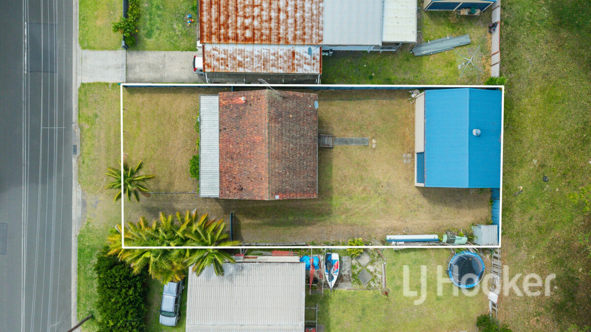 Accommodation includes a generous main bedroom with floor-to-ceiling built-in robes, a second bedroom also with built-in storage, and an original bathroom with a separate toilet. Side access leads to a huge 9 x 7 metre shed with two high roller doors, ideal for storing vehicles, toys or creating the ultimate workshop, plus additional off-street parking.