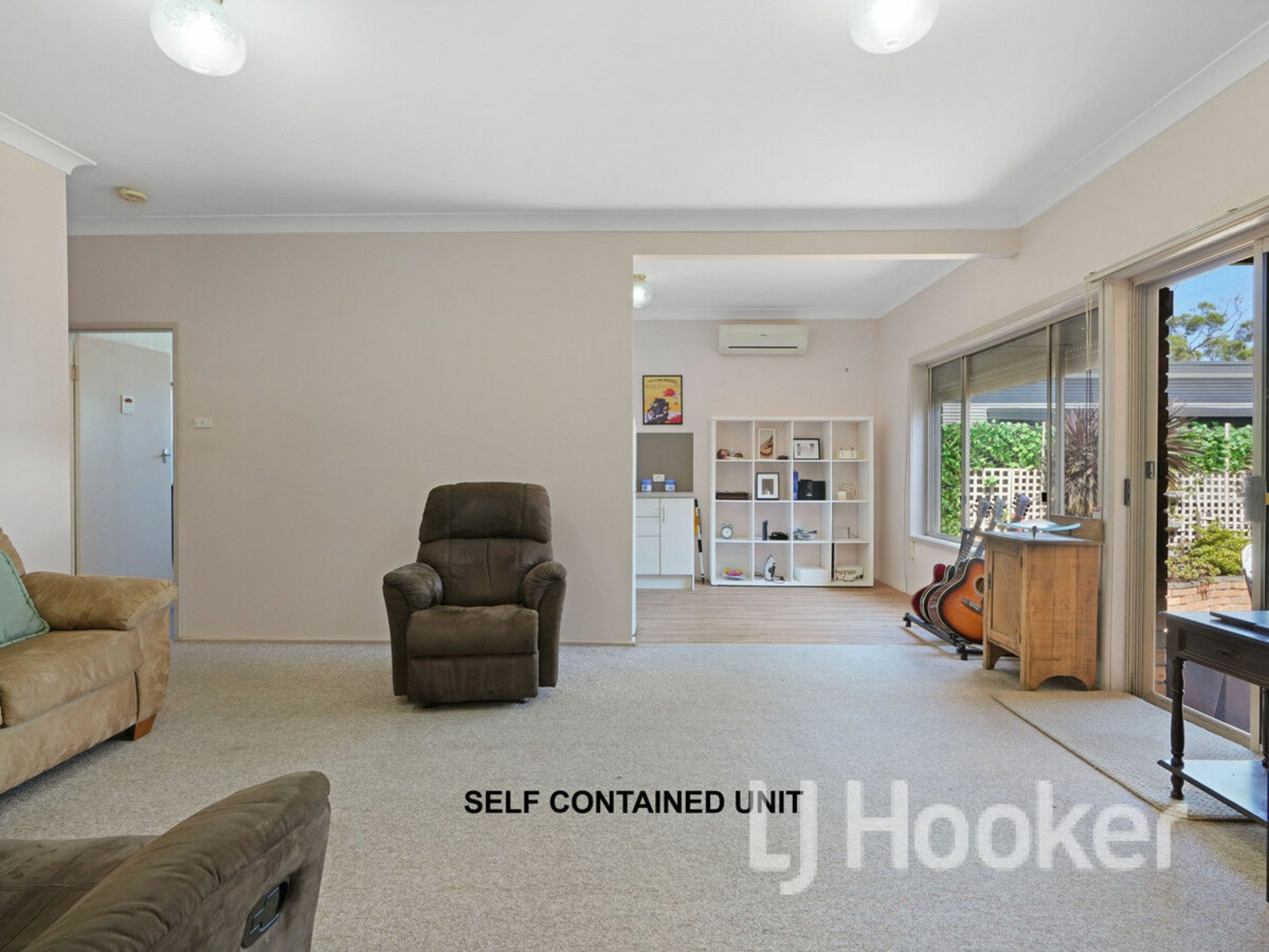 The home has been thoughtfully designed to accommodate a range of living arrangements, including a fully self-contained two-bedroom studio featuring a modern kitchen, bathroom, open-plan living and dining area, split system air conditioning and direct access to a private courtyard. The main residence offers two bedrooms on the ground floor, both with built-in robes, a luxury bathroom - tiled from floor to ceiling and with a large corner bath, along with a flexible loft-style retreat complete with bedroom and toilet, ideal as a private guest space, home office or parents' retreat. An internal laundry with an additional toilet adds further functionality.