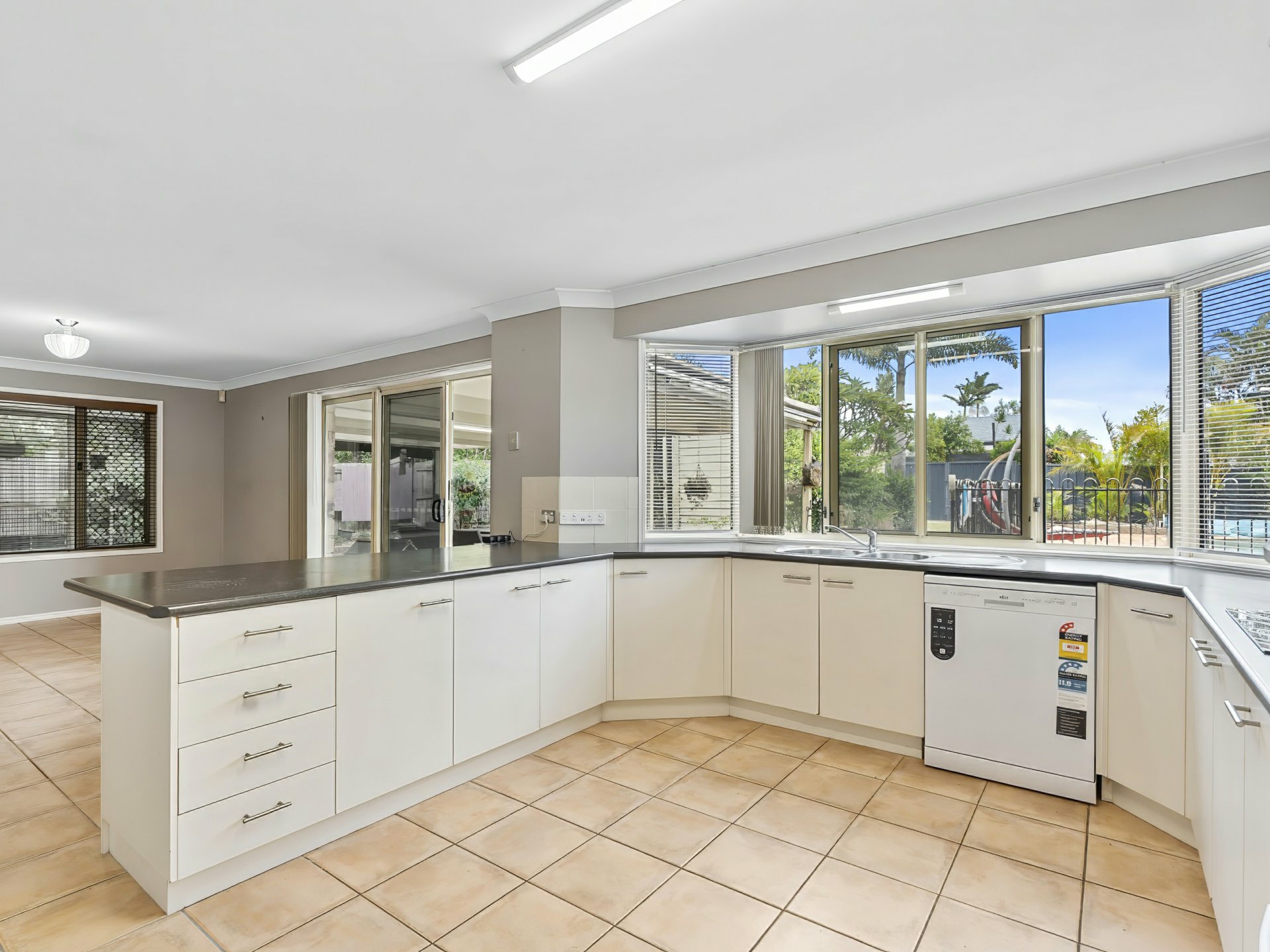 The heart of the home is the kitchen, overlooking the pool, making everyday living and entertaining effortless. Step outside to a covered outdoor entertaining area, a demountable pool room, and a private, secure yard — perfect for relaxed coastal living.