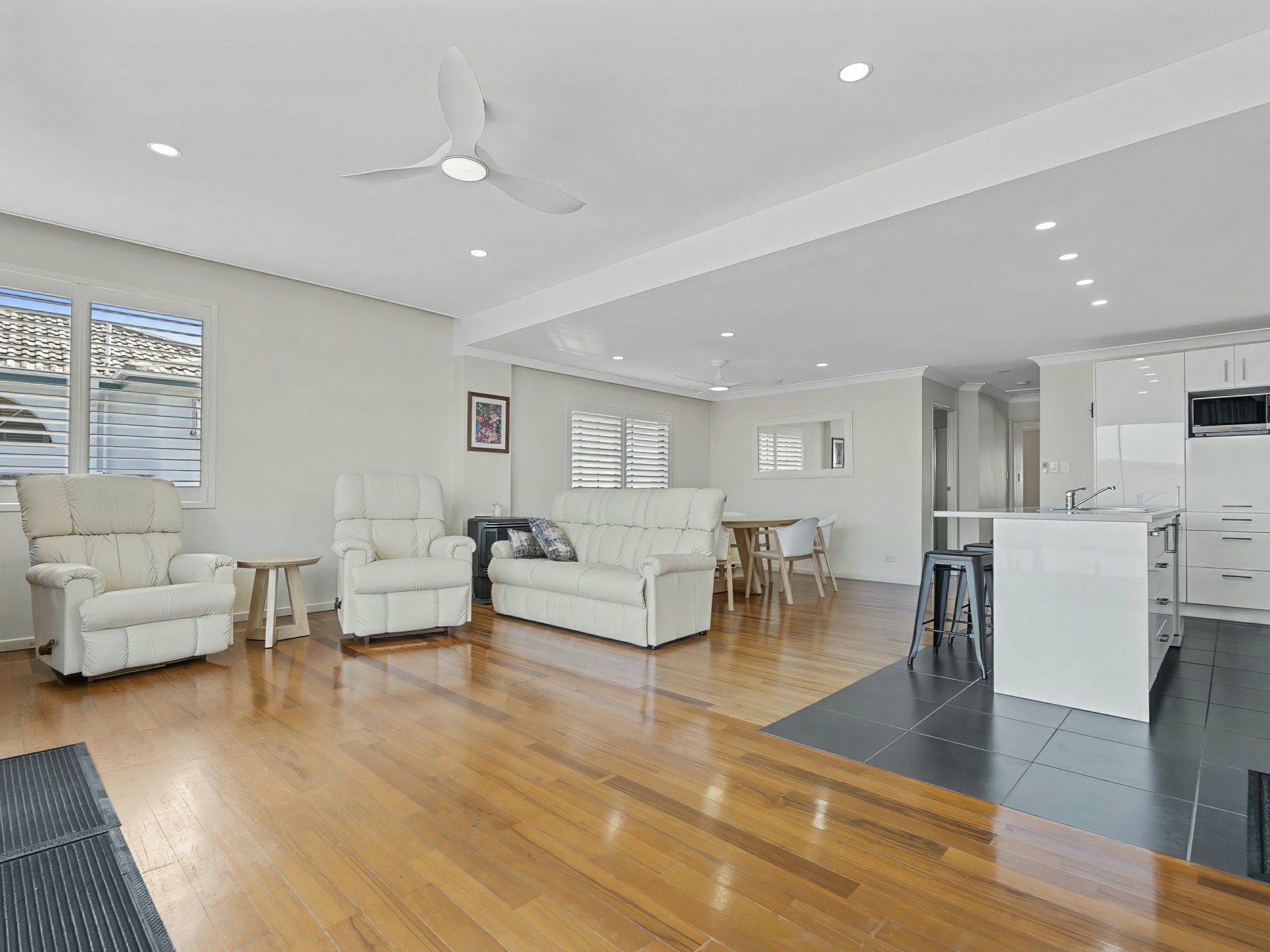 - Spacious, light filled open plan living and dining area.