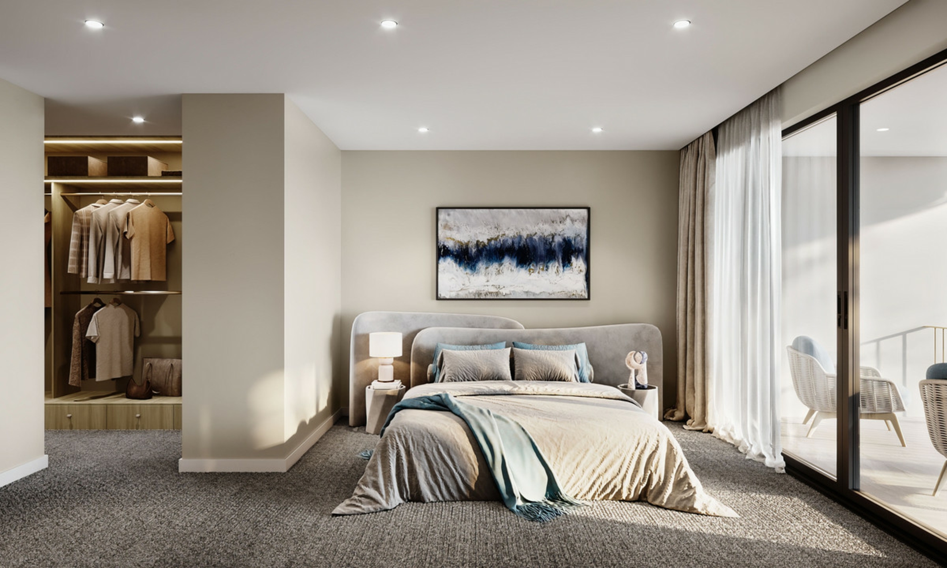 Each bedroom is a sanctuary in its own right, with the master boasting a tranquil atmosphere thanks to plush carpeting and a bespoke wardrobe, ensuring a clutter-free environment. Meanwhile, the spa-like bathrooms serve as private oases, featuring stone vanities and rainfall showers that transform daily rituals into indulgent experiences.