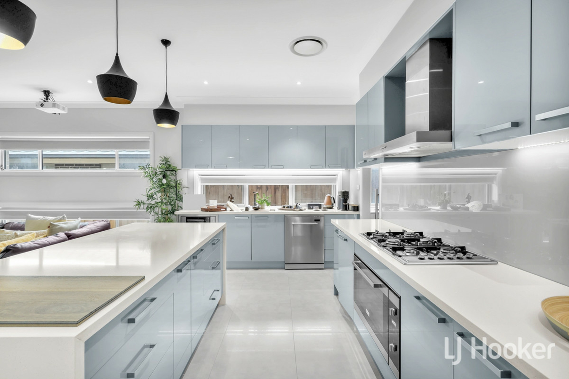 - Designer kitchen with stone bench-tops, island breakfast bar, gas cooking, butler's pantry and ample storage