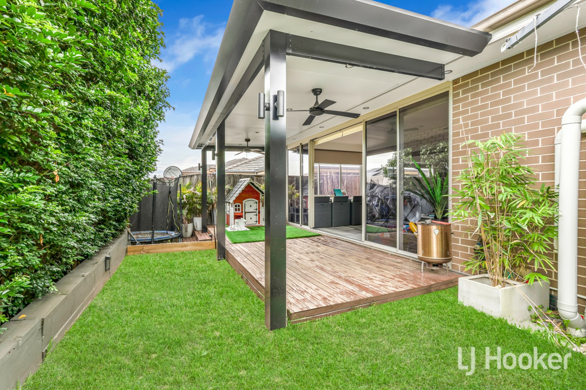 - Covered pergola perfect for entertaining plus low-maintenance backyard, perfect for families