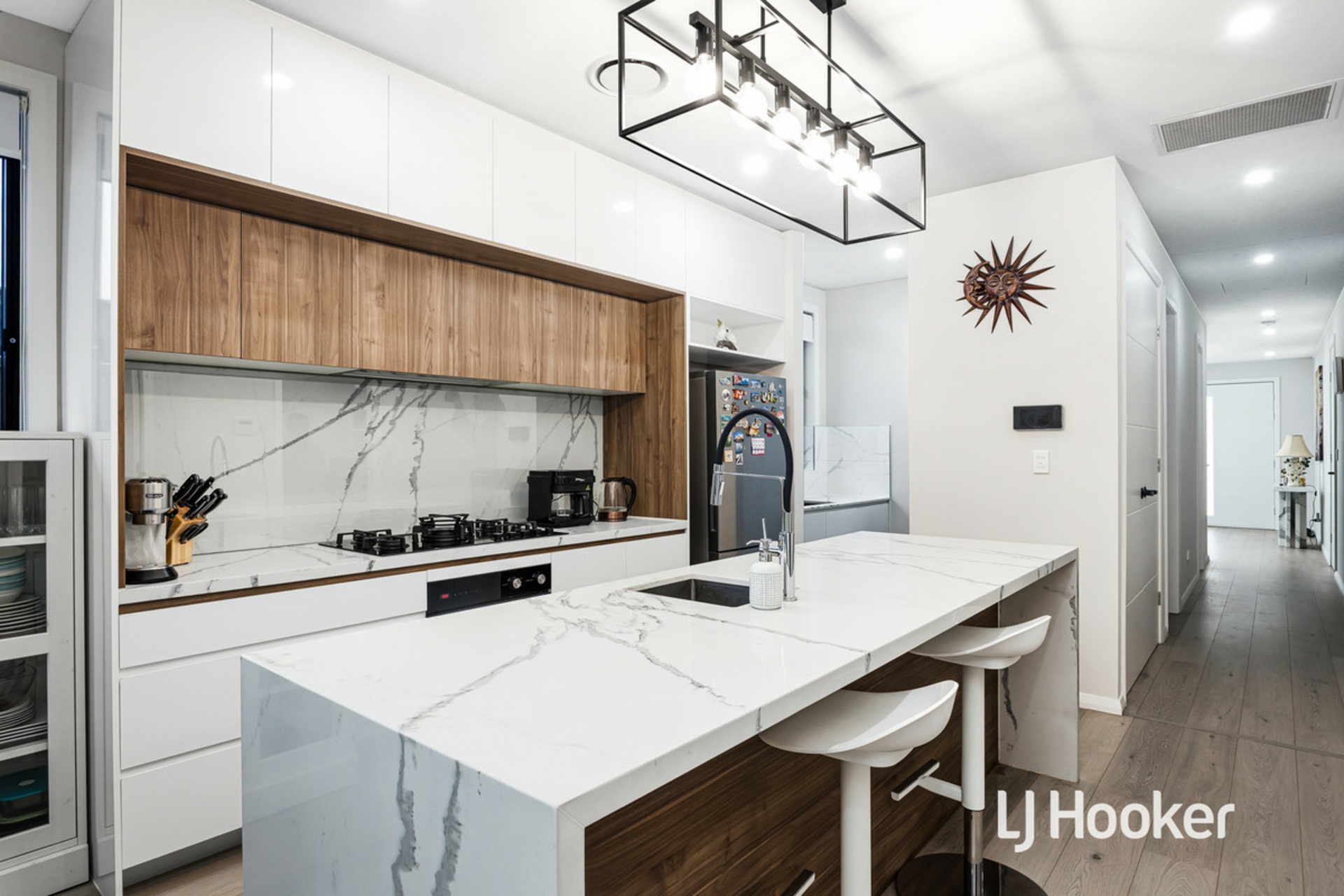 - Beautiful kitchen boasts walk-in pantry, gas cooking, island bench, sleek cabinetry