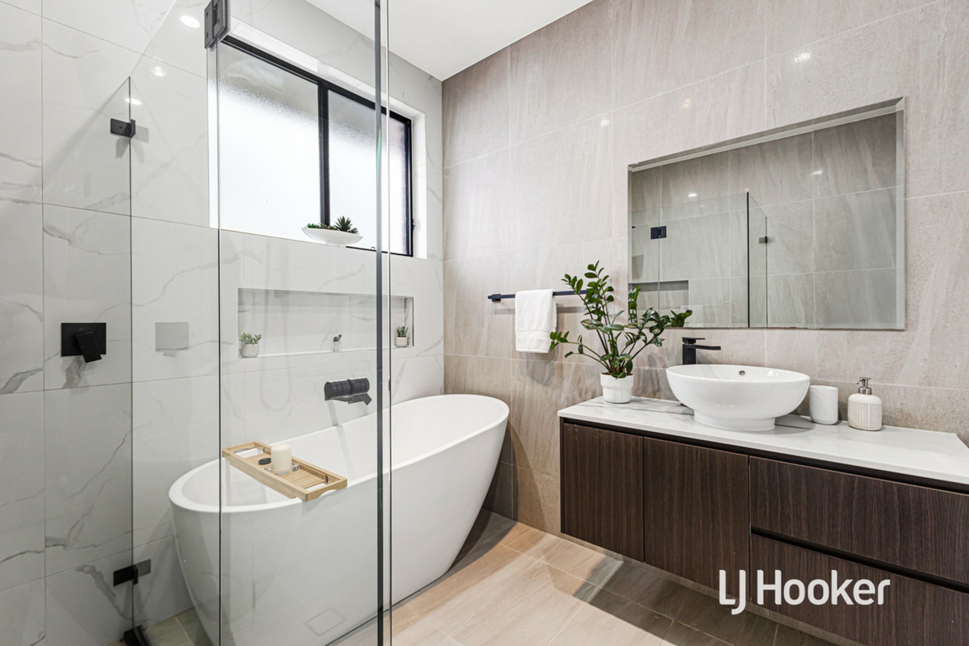 - Main bathroom features separate shower and luxurious free-standing bathtub