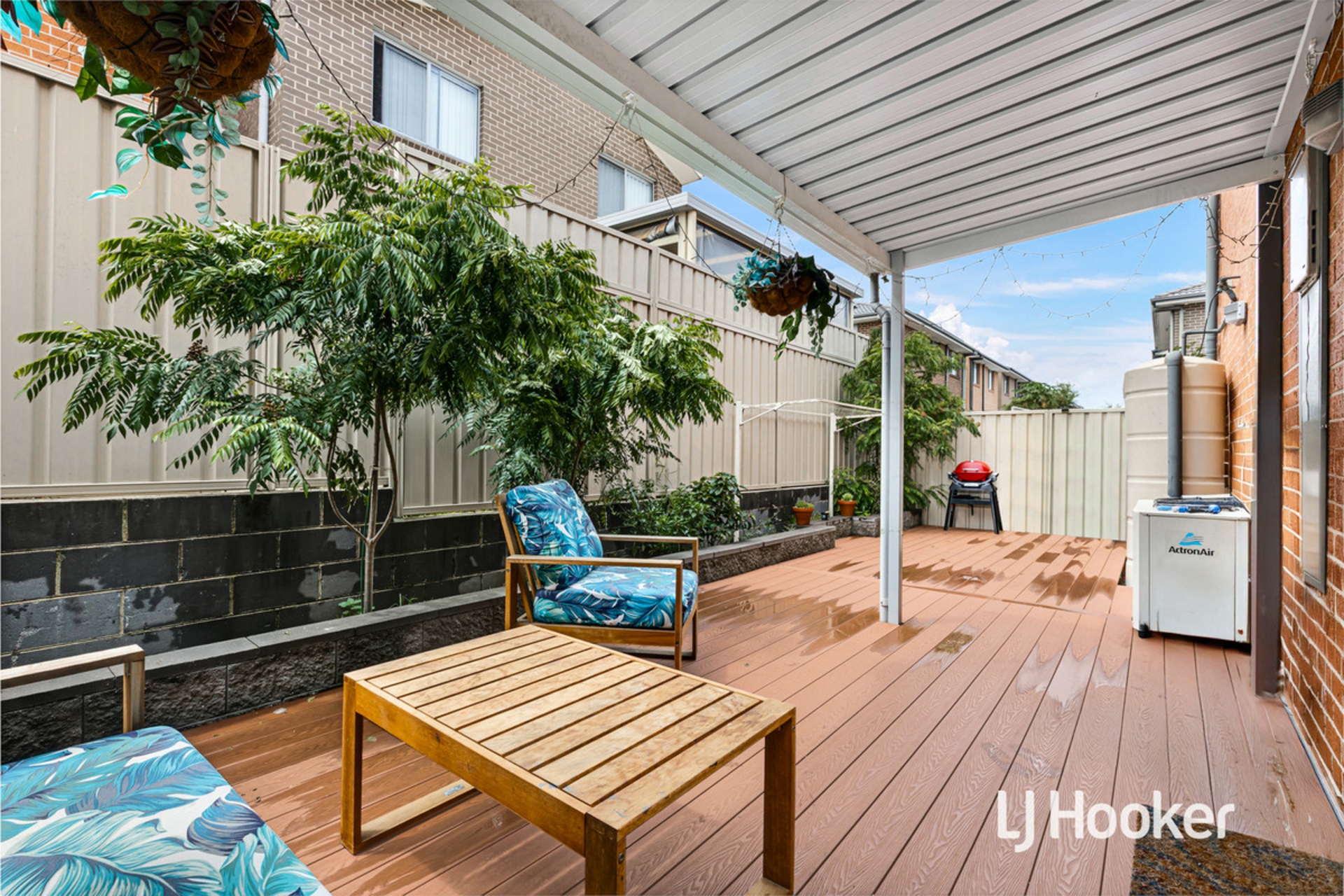 - Covered alfresco area with timber decking, perfect for entertaining or relaxation