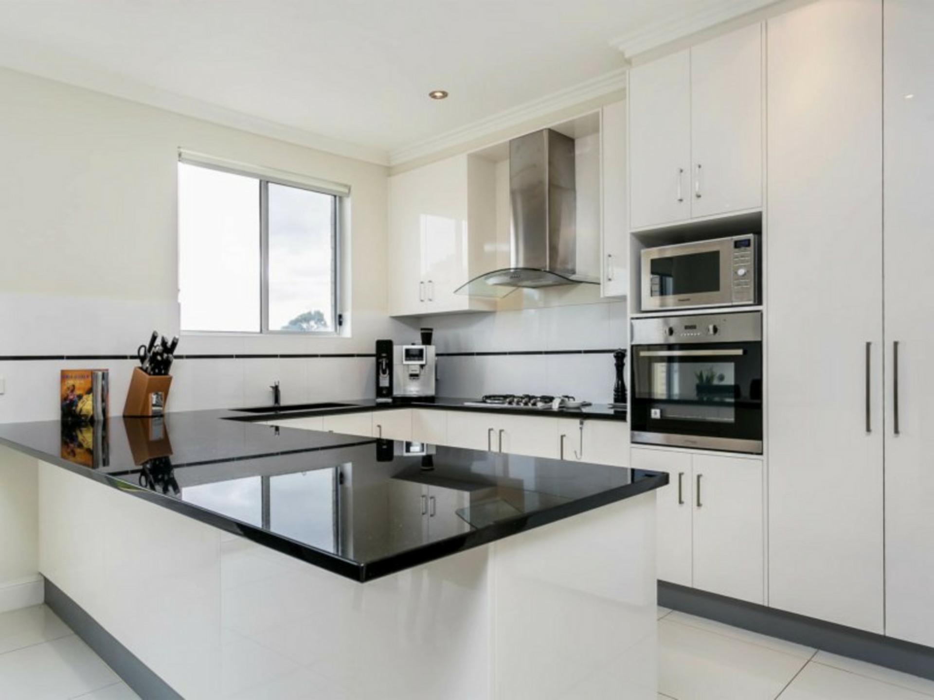 - Modern kitchen with breakfast bar, stainless steel appliances (including dishwasher) and ample storage