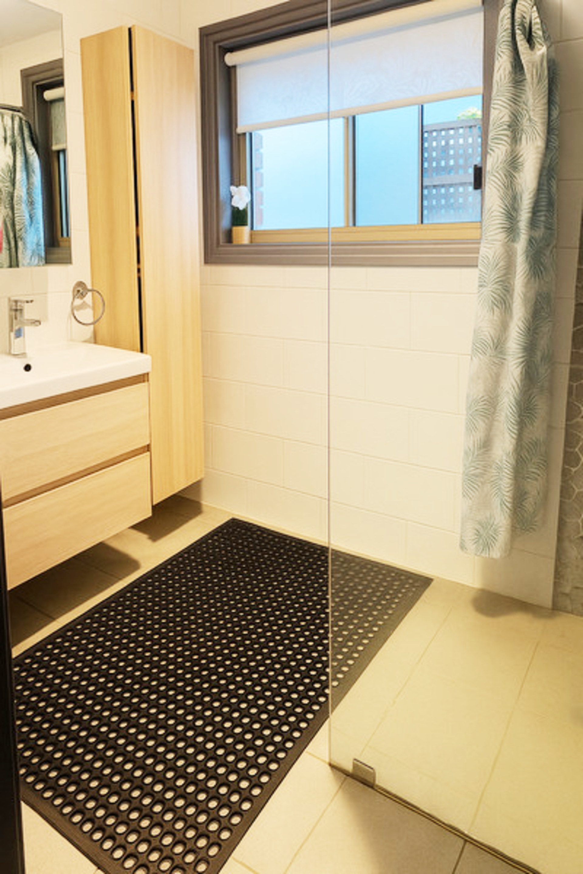 - Fully renovated bathroom with shower alcove, floating vanity and heated towel rail