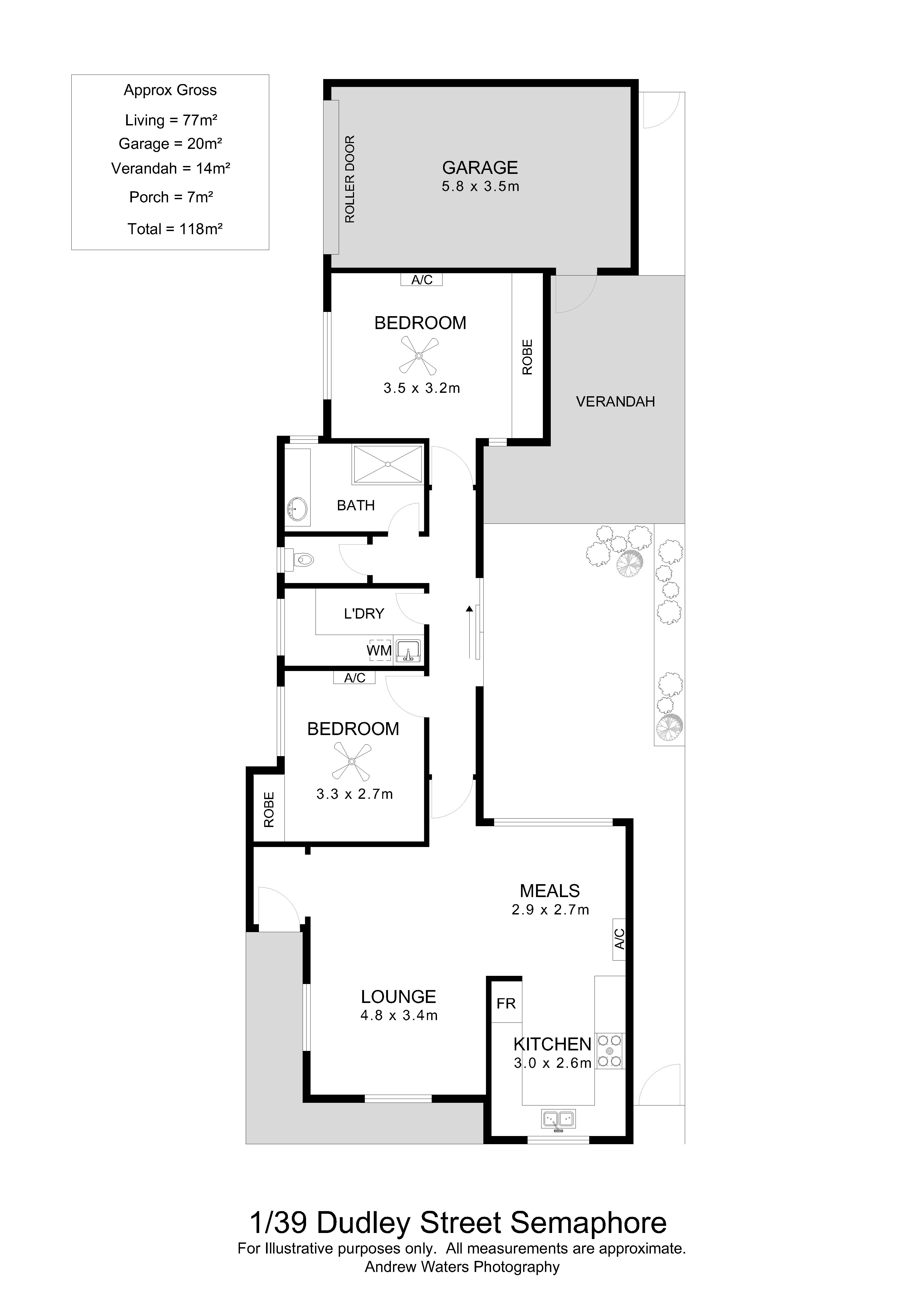 - 2 spacious bedrooms, both with mirrored built-in wardrobes, ceiling fans, and split system air conditioning
