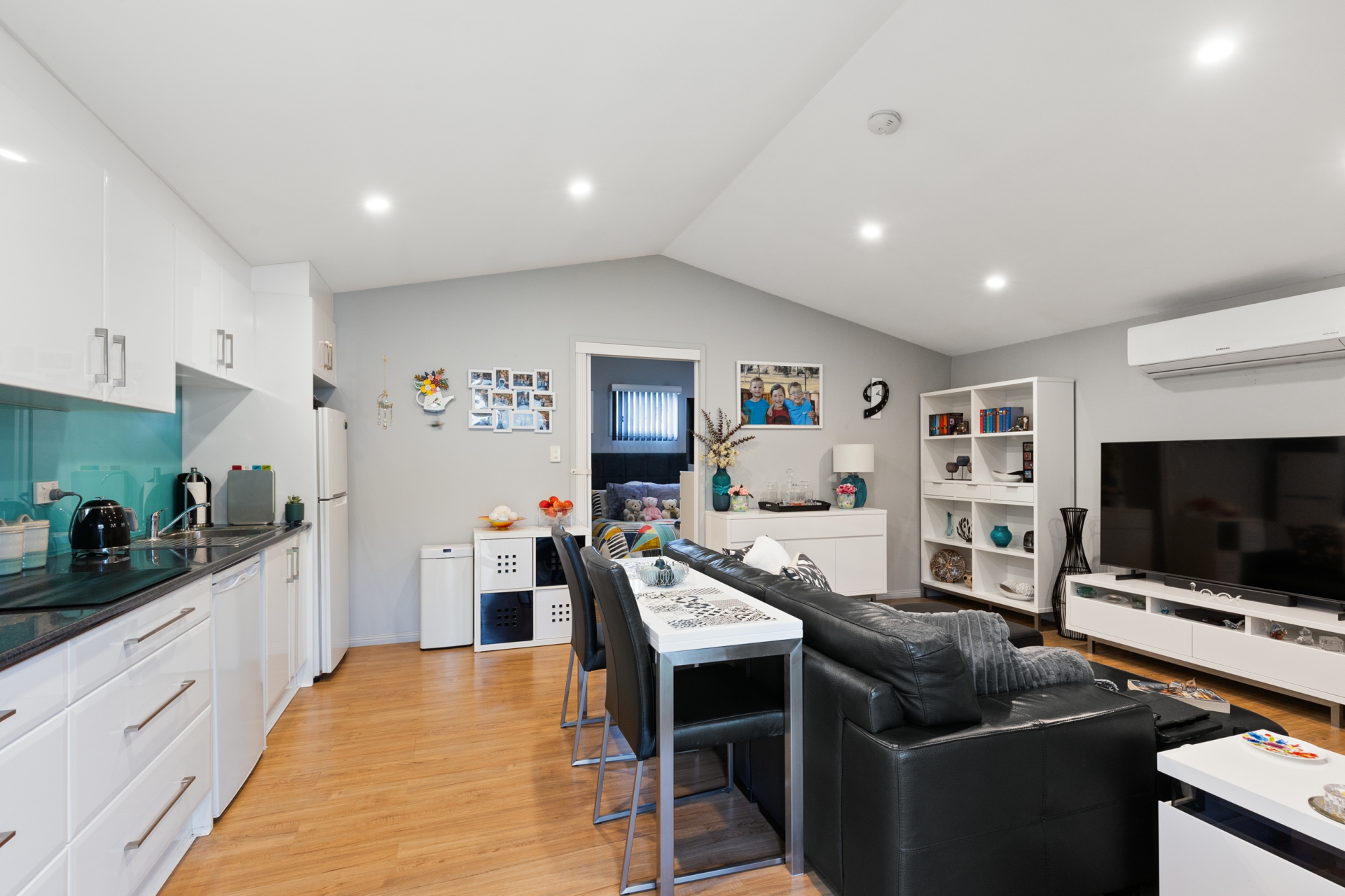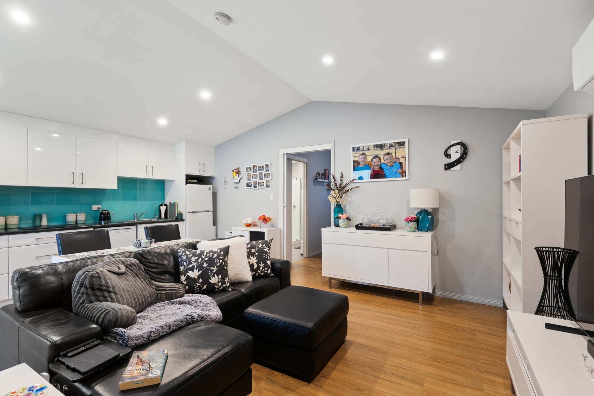 The back yard is zero maintenance with artificial turf still giving the kids room to run and a spot for the swing set or basketball ring. The self-contained flat is really well appointed with LED lighting, reverse cycle air conditioning, ensuite style bathroom off the bedroom and a kitchenette complete with sink.
