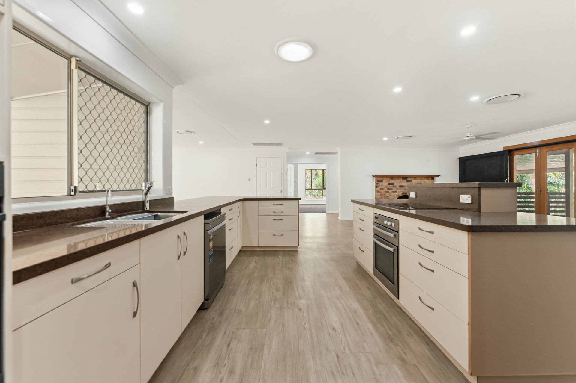 Massive open-plan kitchen, living, and dining area creates a grand central hub that effortlessly accommodates large family gatherings and sophisticated entertaining.