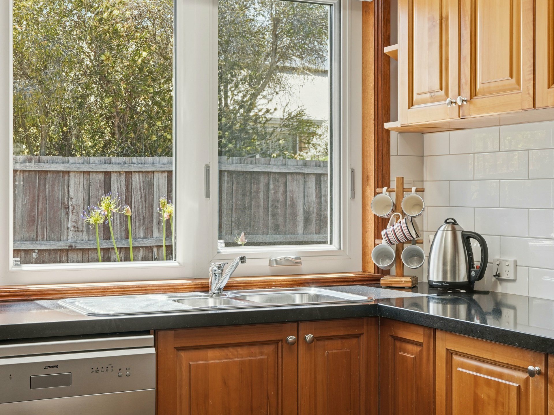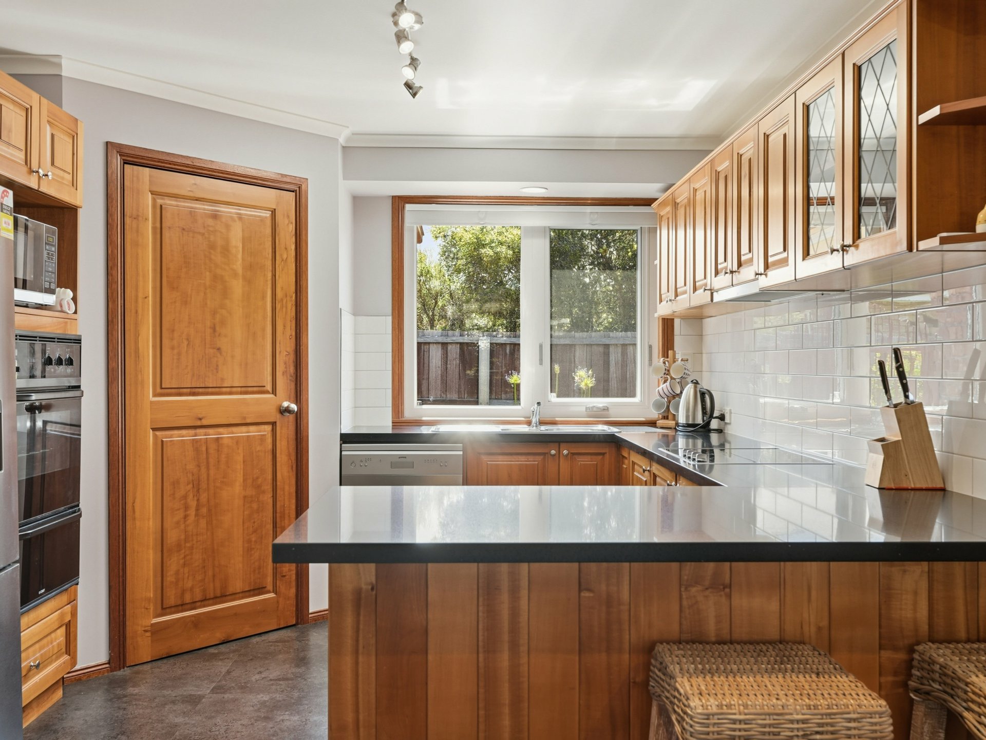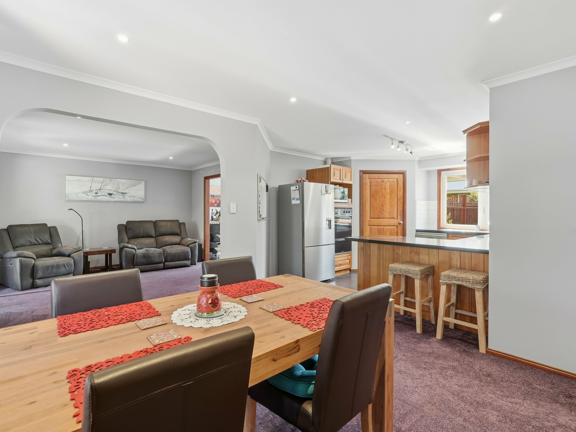 • Light-filled open-plan kitchen and dining at the heart of the home, with updated benchtops and splashbacks – more “this year” than “1990s throwback”.
