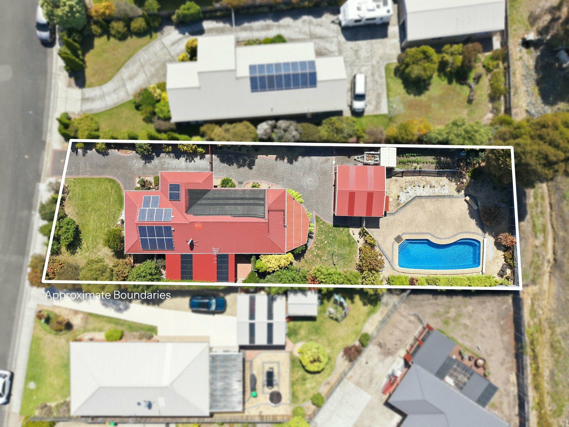 • Solar-heated in-ground swimming pool with high fencing – summers sorted and no fighting for a spot at the public pool.