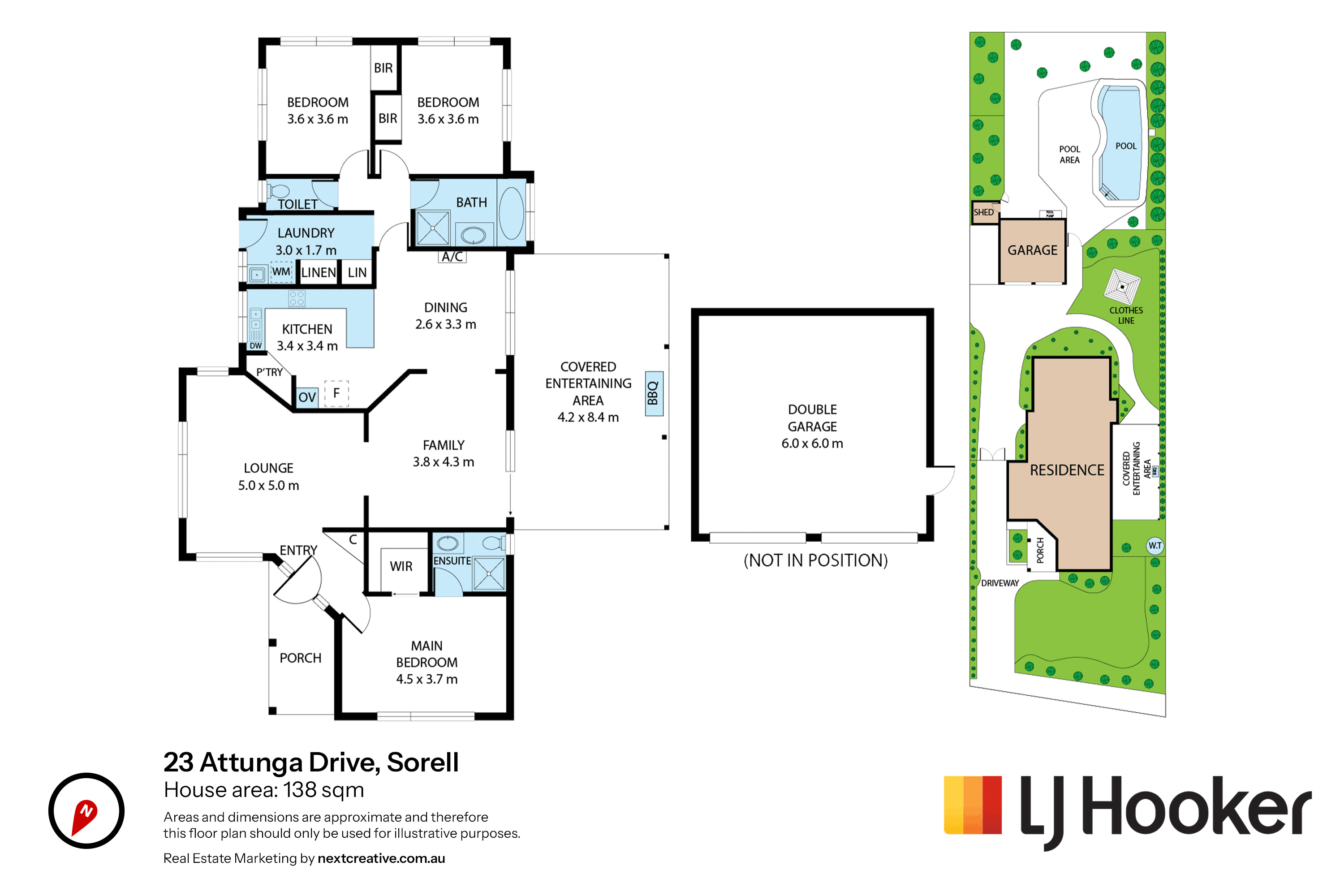 • 3 bed, 2 bath, 2 living, 2 car with around 140m2 of comfortable living (plus that big outdoor entertaining zone and double garage).