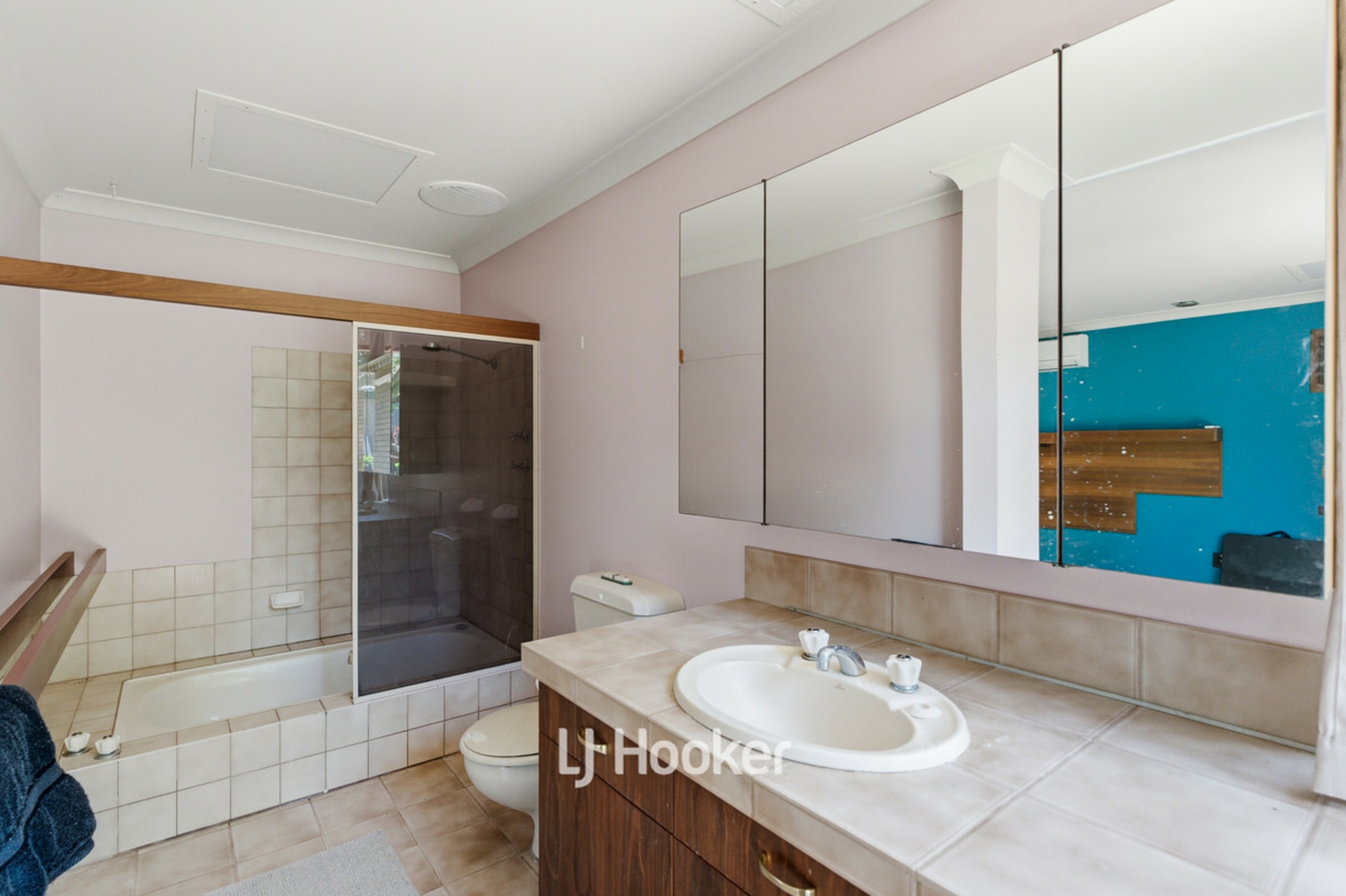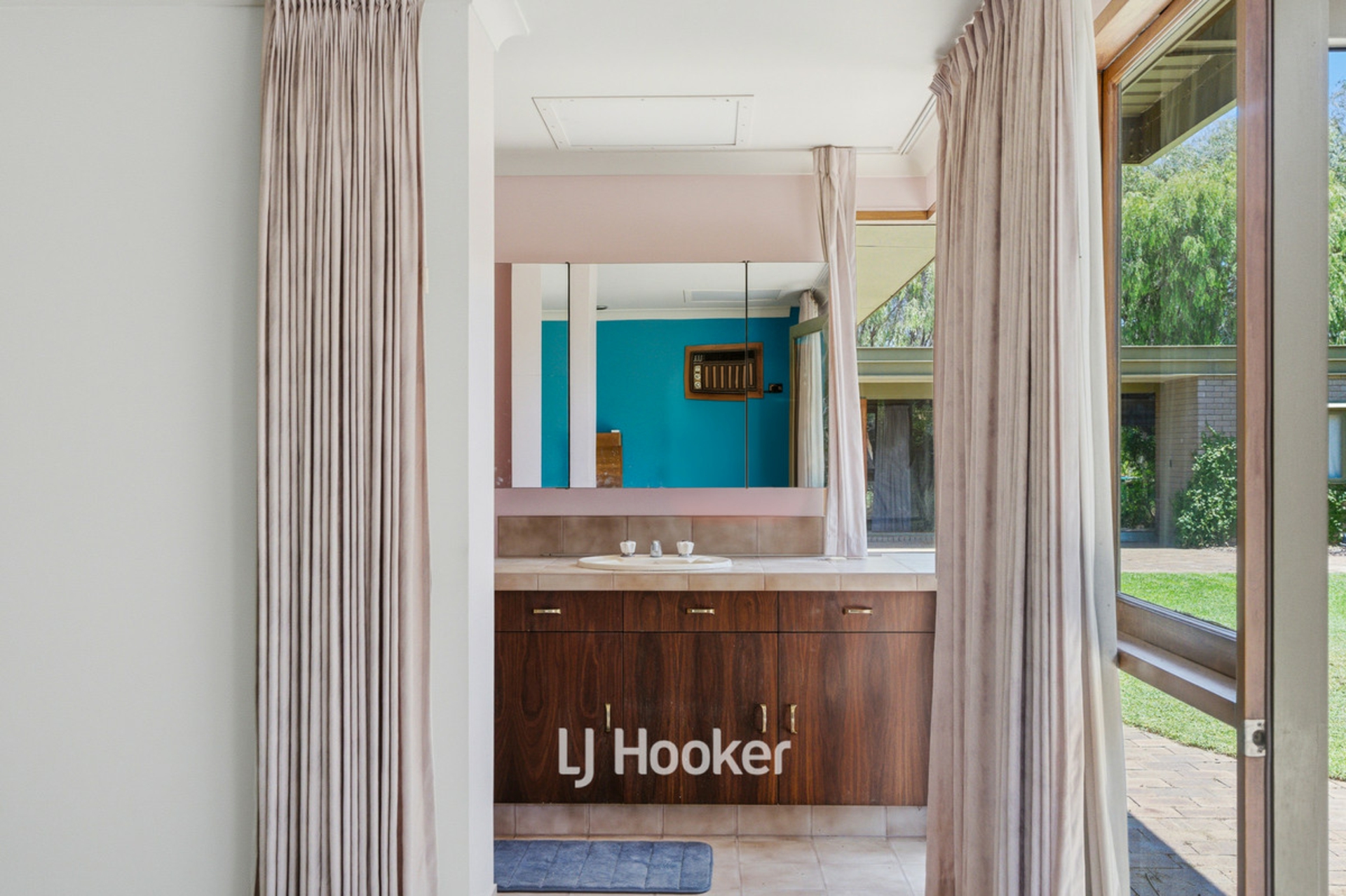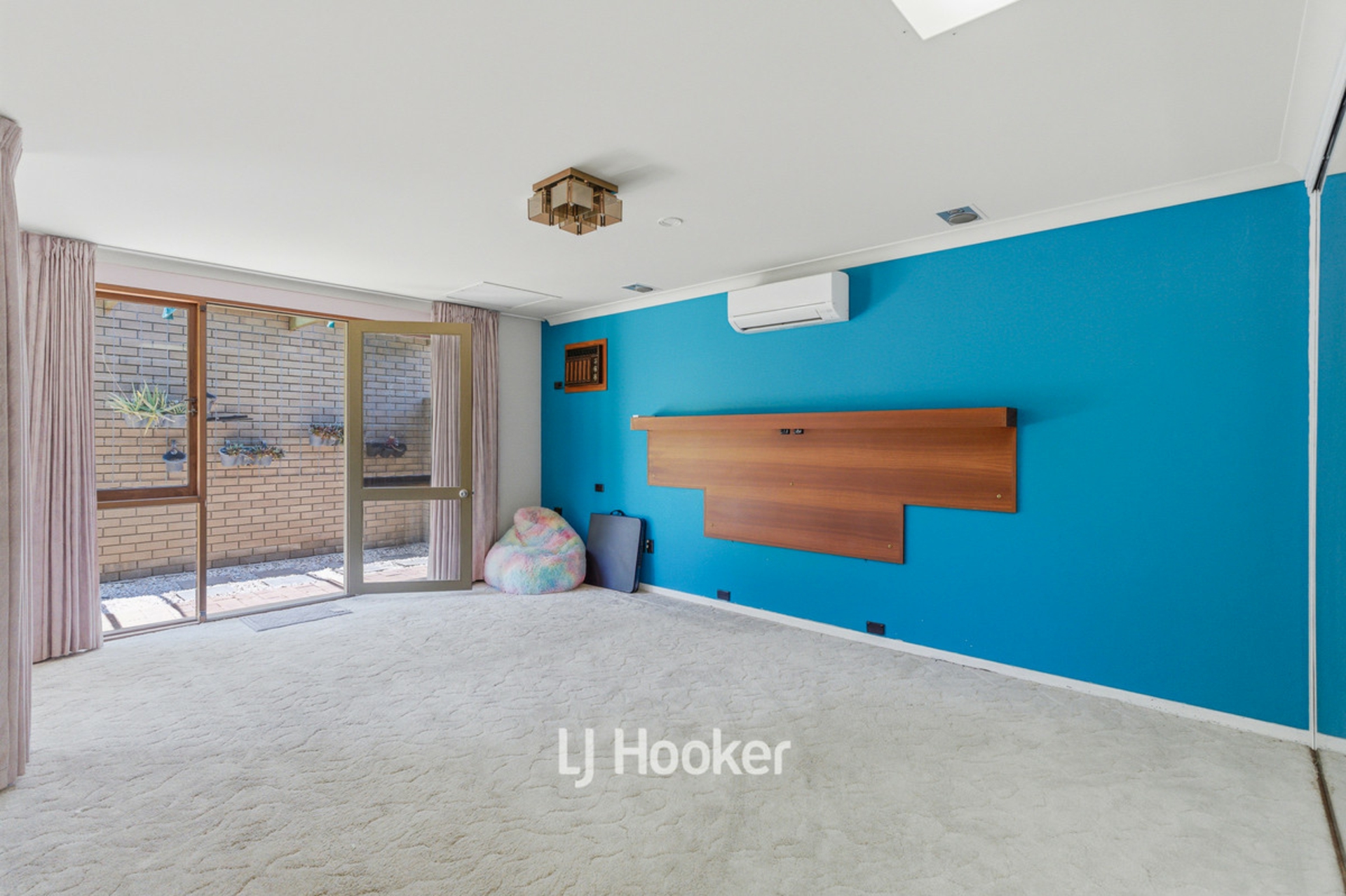 The master bedroom is generously sized and includes a full wall of mirrored robes plus a split-system air conditioner to keep you comfortable year-round. Outside, the property continues to impress with manicured gardens and a powered double lock-up garage with workshop and storage space.