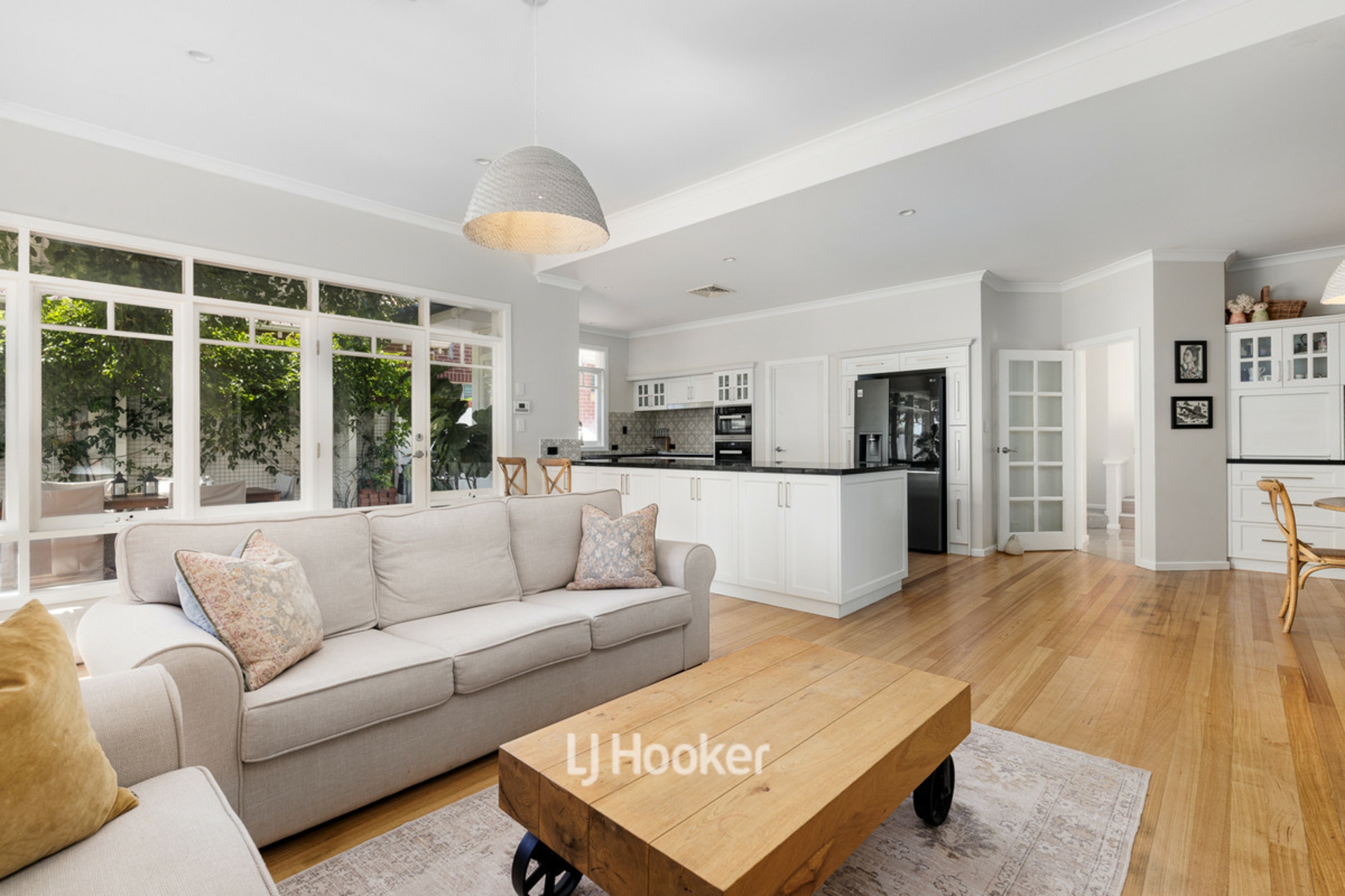 - Open-plan living and dining area with outlook to backyard