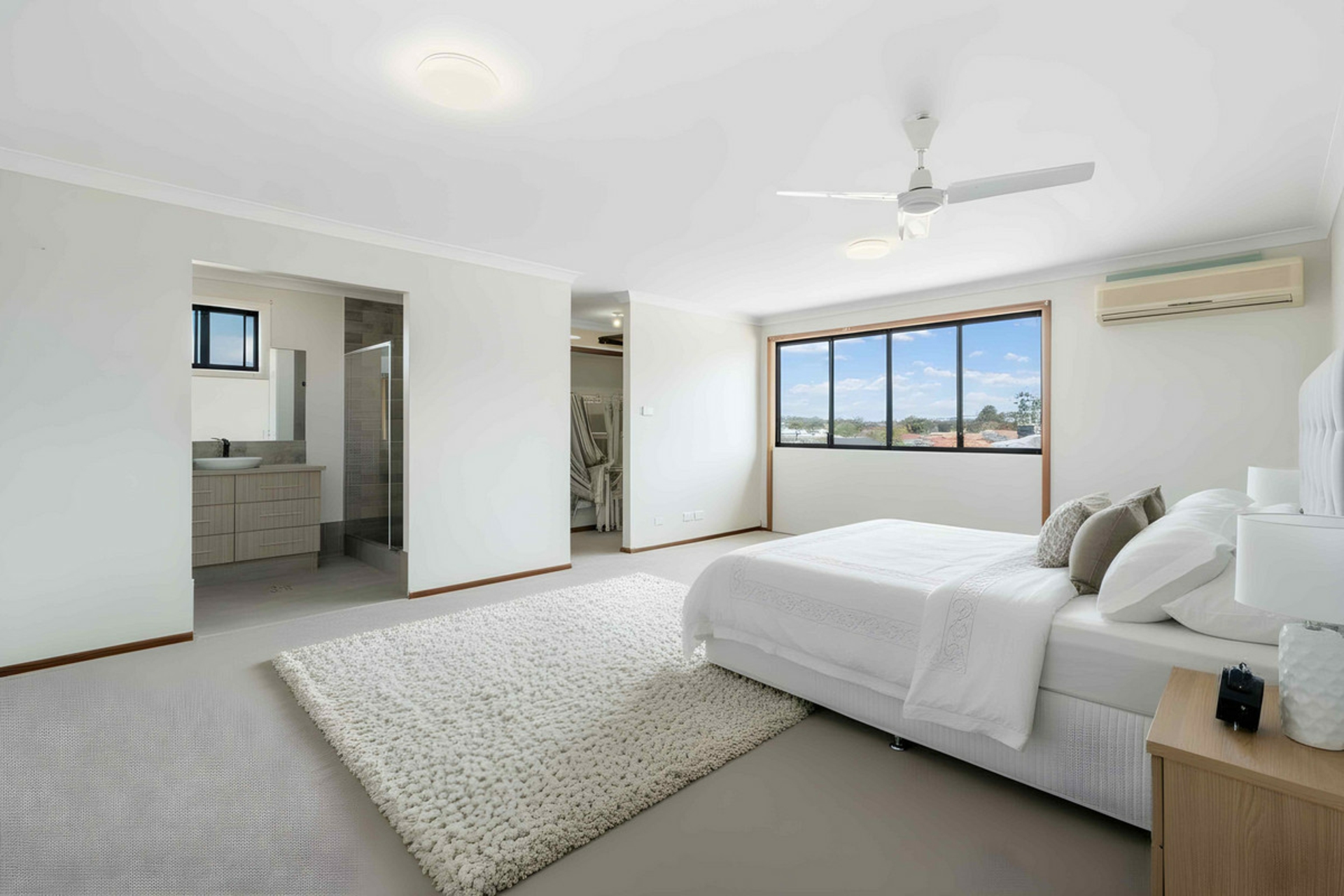 - Generous master suite with walk-in robe, ensuite, ceiling fan, and reverse-cycle air conditioning