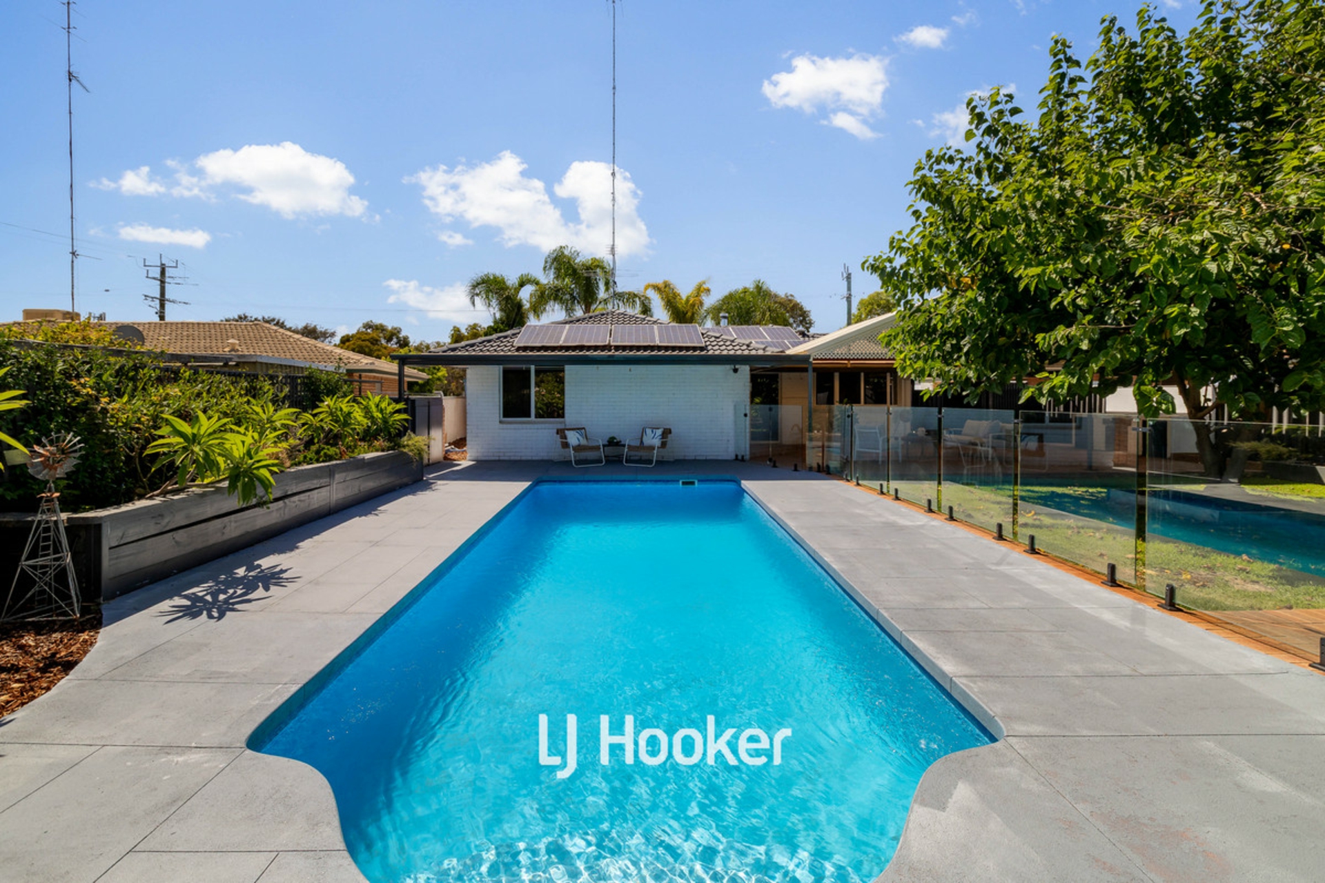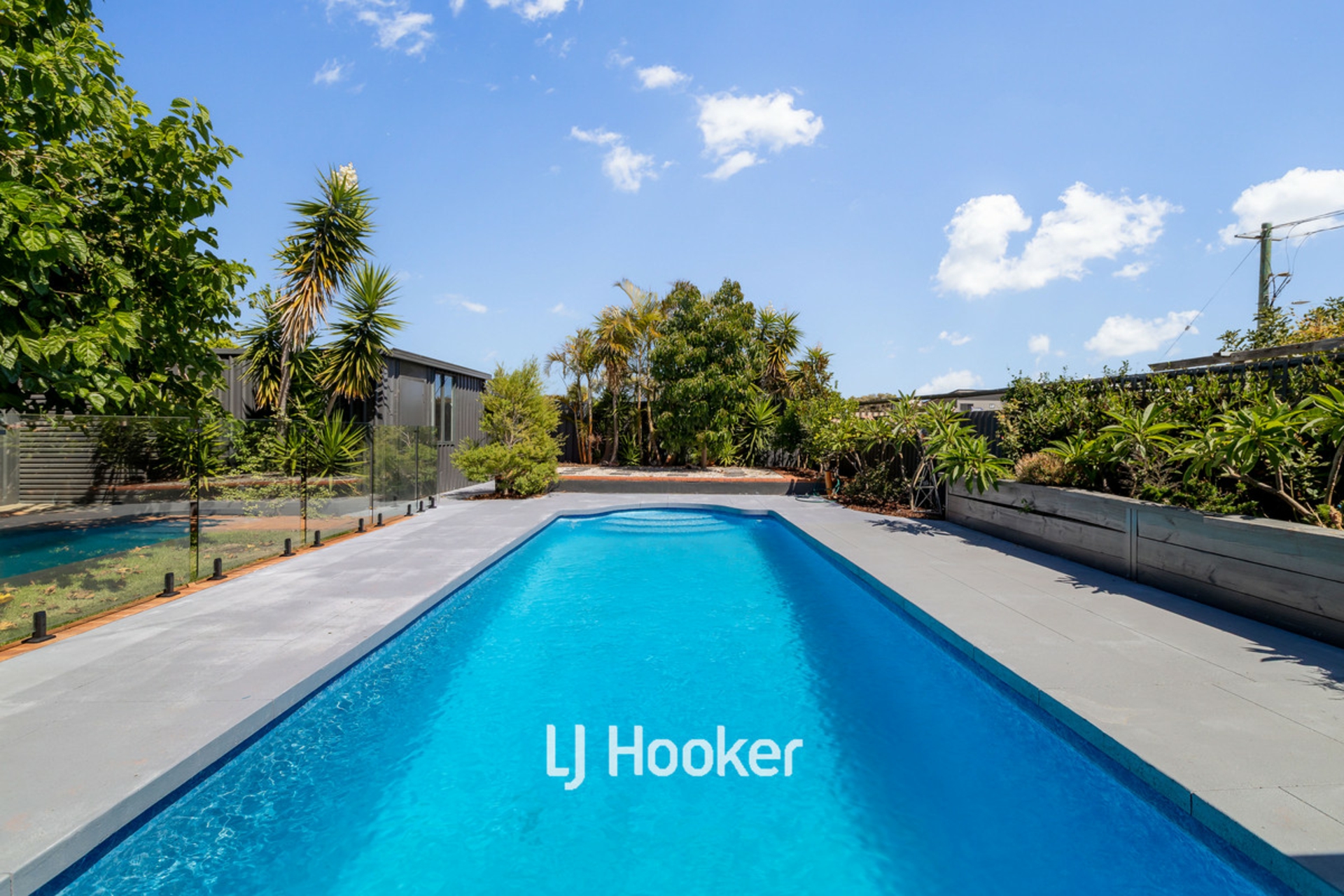 - Pool with glass panel fencing