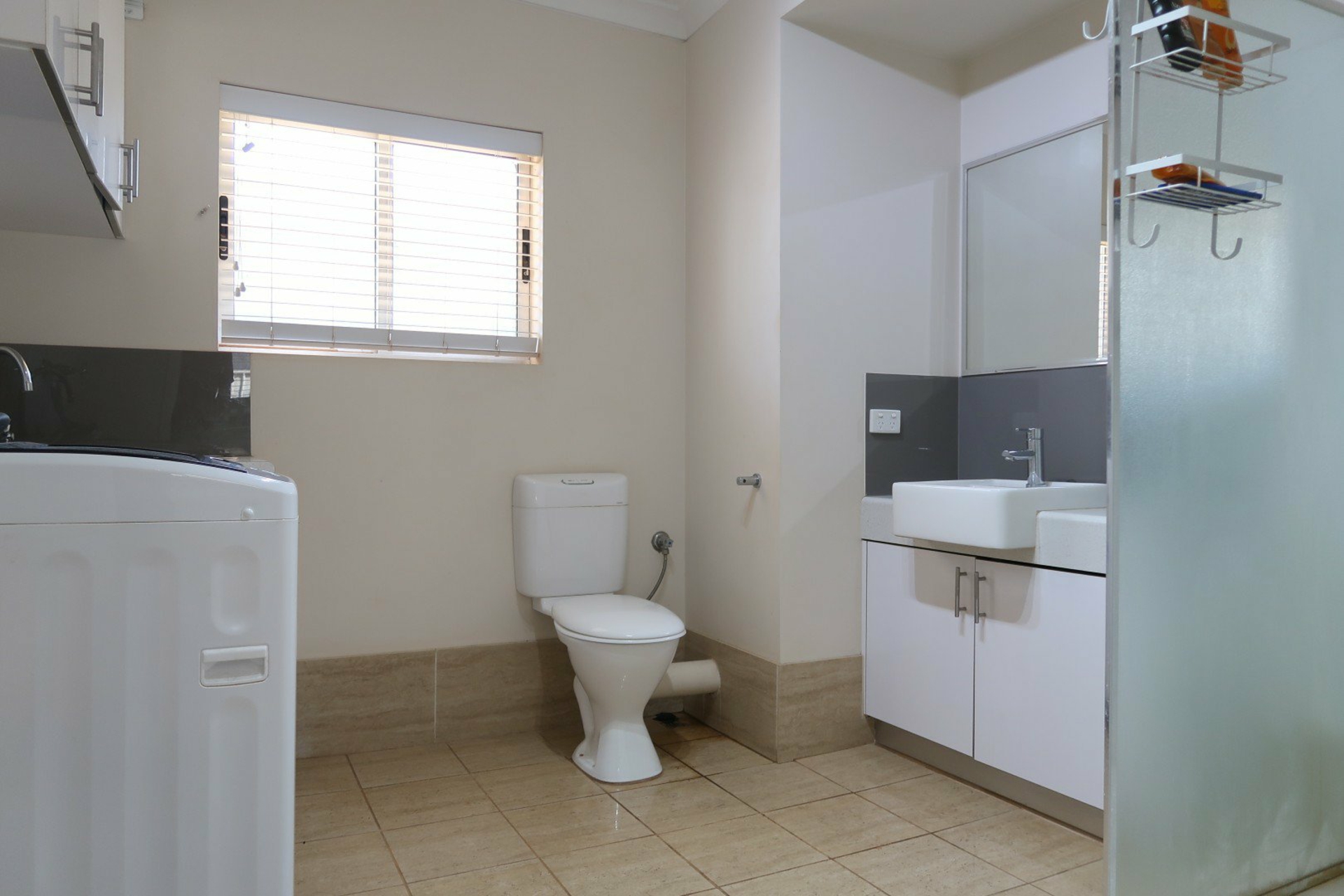 The spacious bedroom includes large capacity mirrored robes, and the large combined bathroom and laundry adds convenience.