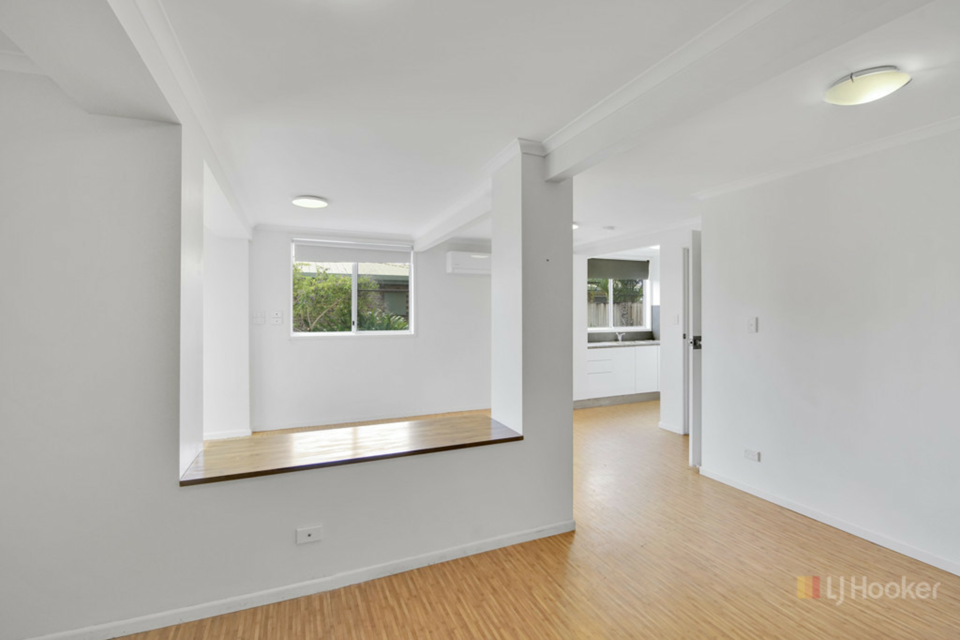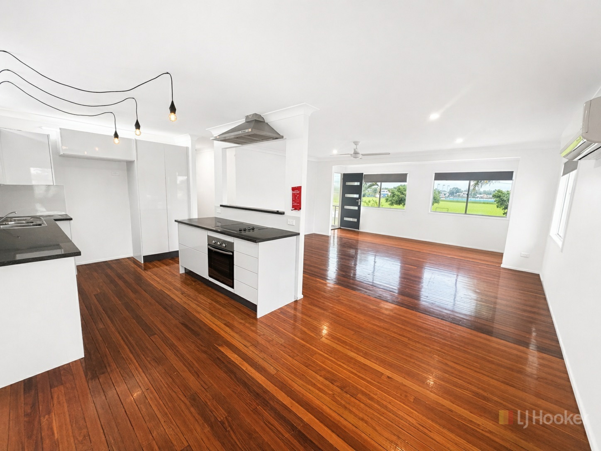 Upstairs showcases beautiful polished timber floors and offers a spacious, fully air-conditioned layout. The open plan living and dining area flows seamlessly into a modern kitchen, complete with a built-in study nook-perfect for working from home or study. Three generous bedrooms, all with built-in robes, are serviced by a stylish main bathroom, plus the added convenience of a separate toilet.