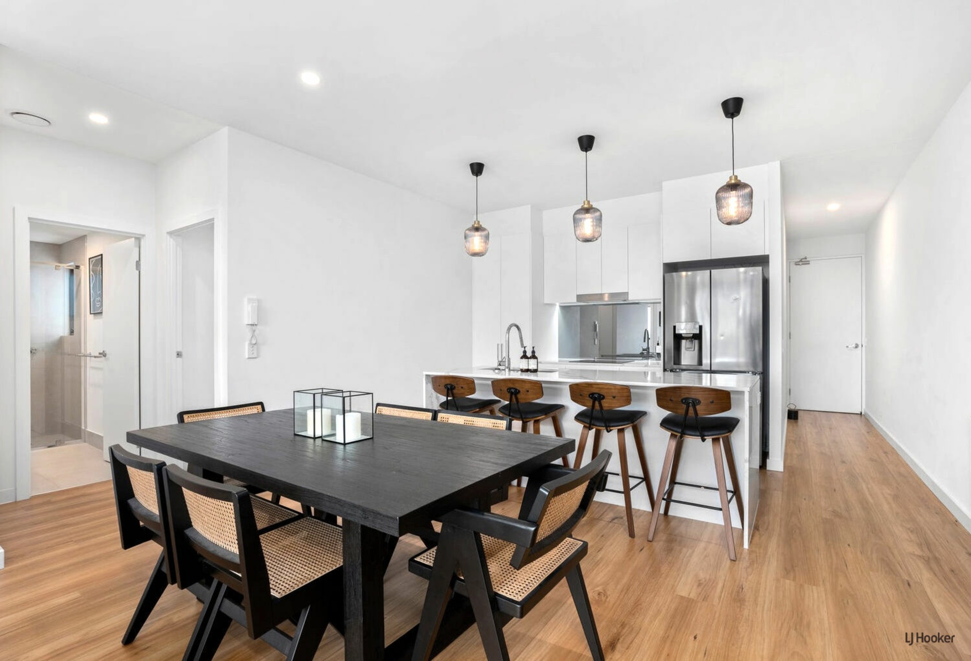 From the moment you step inside, the apartment showcases a timeless modern design, elevated by warm timber flooring that flows seamlessly throughout. This cohesive foundation is complemented by a refined neutral palette, creating a sense of luxury that will remain stylish and relevant for years to come.