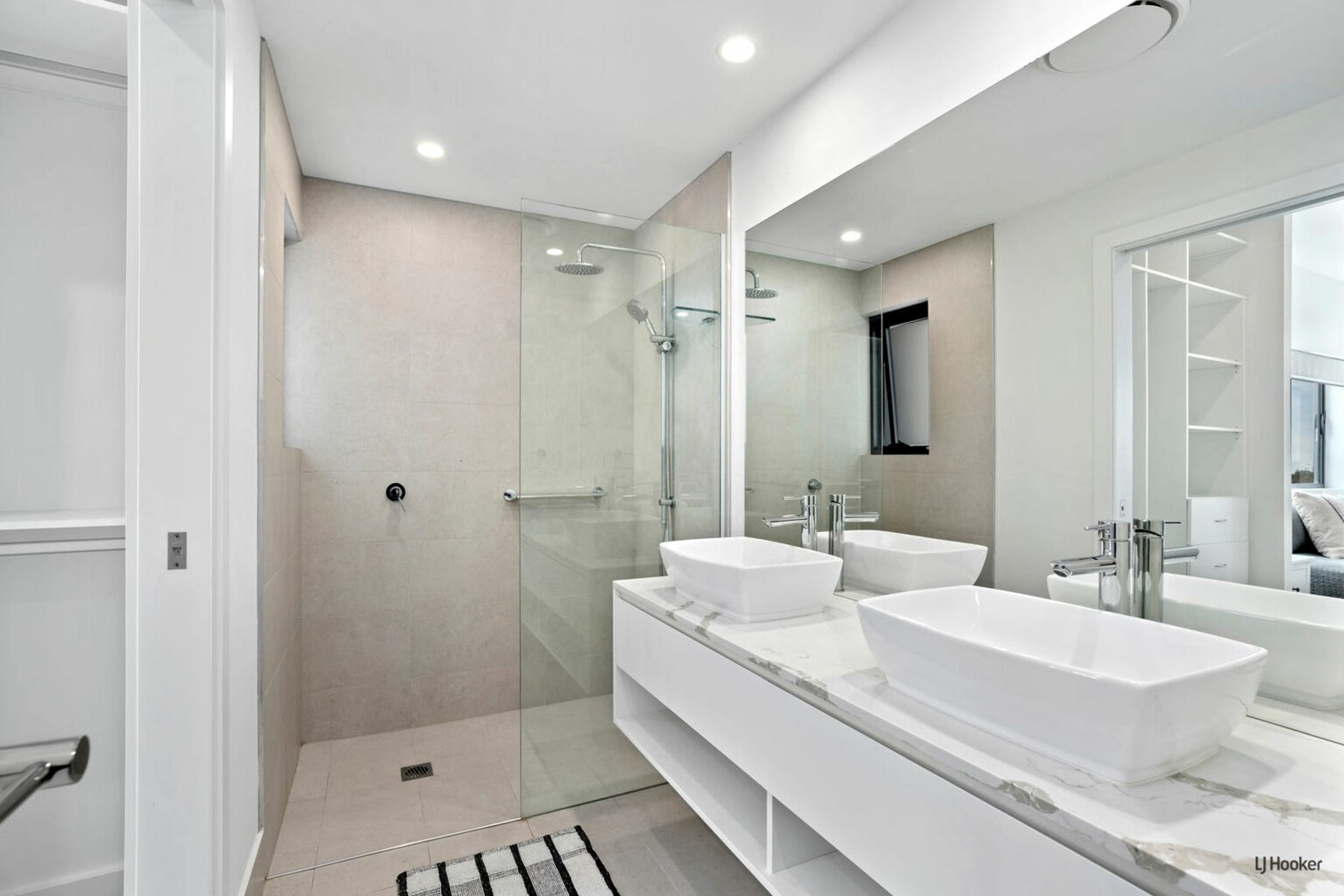 This beautifully considered design continues through to both bathrooms, where the same level of quality and finish is evident. Clean lines, modern fixtures and a consistent material palette create a cohesive, high-end feel, reinforcing the apartment's attention to detail and overall sophistication.